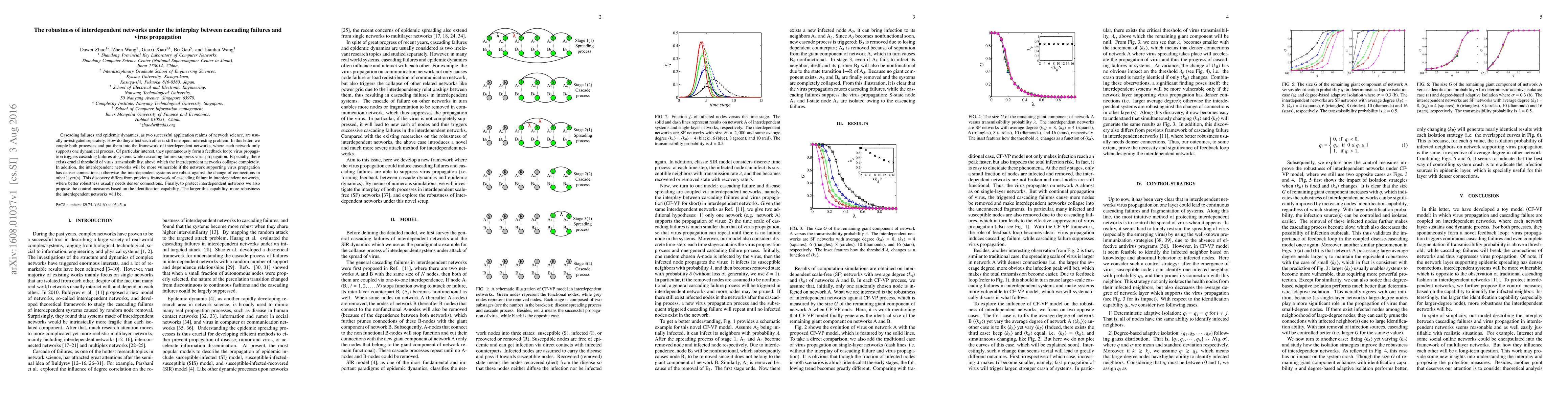 This paper investigates how cascading failures and virus propagation interact in interdependent networks, revealing a feedback loop where each process affects the other. The study finds a critical threshold for virus transmissibility that leads to complete network collapse, and suggests that denser connections in the virus propagation network can make the system more vulnerable, contrary to traditional cascading failure models.