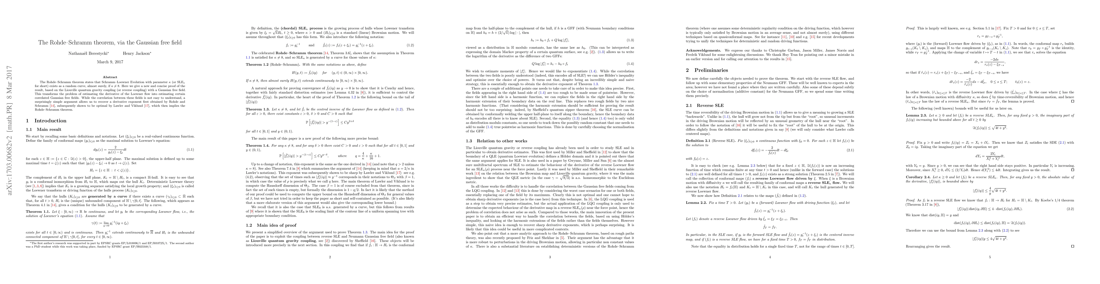 This paper provides a new proof of the Rohde--Schramm theorem on the existence of Schramm--Loewner Evolution (SLE) for $\kappa \neq 8$ using the Liouville quantum gravity coupling with a Gaussian free field, simplifying the estimation of the Loewner flow's derivative.