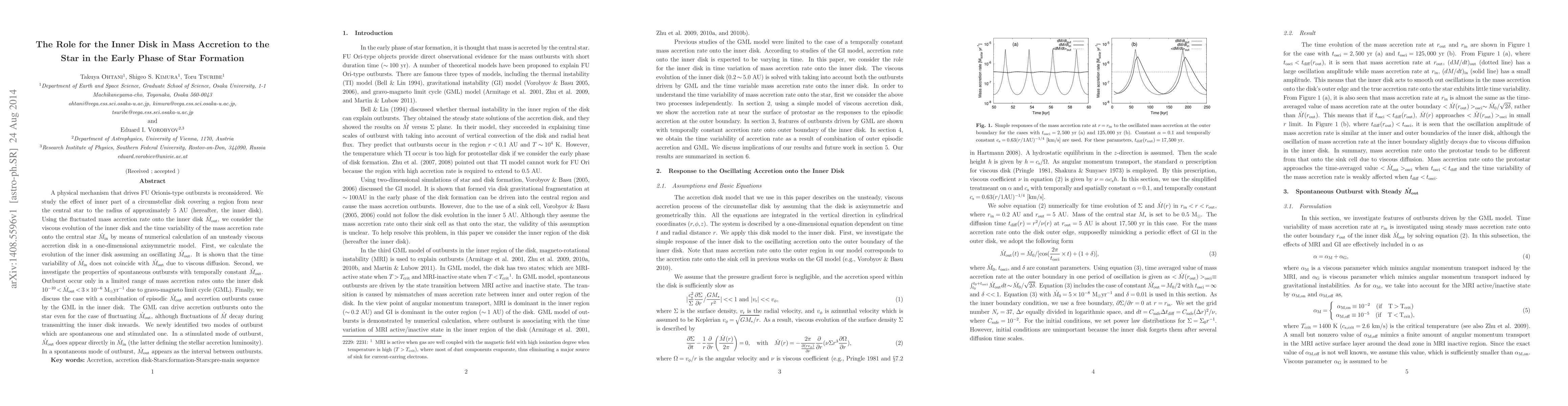 A physical mechanism that drives FU Orionis-type outbursts is reconsidered. We study the effect of inner part of a circumstellar disk covering a region from near the central star to the radius of approximately $5$ AU (hereafter, the inner disk). Using the fluctuated mass accretion rate onto the inner disk $\dot{M}_{\rm out}$, we consider the viscous evolution of the inner disk and the time variability of the mass accretion rate onto the central star $\dot{M}_{\rm in}$ by means of numerical calculation of an unsteady viscous accretion disk in a one-dimensional axisymmetric model. First, we calculate the evolution of the inner disk assuming an oscillating $\dot{M}_{\rm out}$. It is shown that the time variability of $\dot{M}_{\rm in}$ does not coincide with $\dot{M}_{\rm out}$ due to viscous diffusion. Second, we investigate the properties of spontaneous outbursts with temporally constant $\dot{M}_{\rm out}$. Outburst occur only in a limited range of mass accretion rates onto the inner disk $10^{-10}<\dot{M}_{\rm out}< 3\times 10^{-6}~{\rm M}_{\odot} {\rm yr}^{-1}$ due to gravo-magneto limit cycle (GML). Finally, we discuss the case with a combination of episodic $\dot{M}_{\rm out}$ and accretion outbursts cause by the GML in the inner disk. The GML can drive accretion outbursts onto the star even for the case of fluctuating $\dot{M}_{\rm out}$, although fluctuations of $\dot{M}$ decay during transmitting the inner disk inwards. We newly identified two modes of outburst which are spontaneous one and stimulated one. In a stimulated mode of outburst, $\dot{M}_{\rm out}$ does appear directly in $\dot{M}_{\rm in}$ (the latter defining the stellar accretion luminosity). In a spontaneous mode of outburst, $\dot{M}_{\rm out}$ appears as the interval between outbursts.