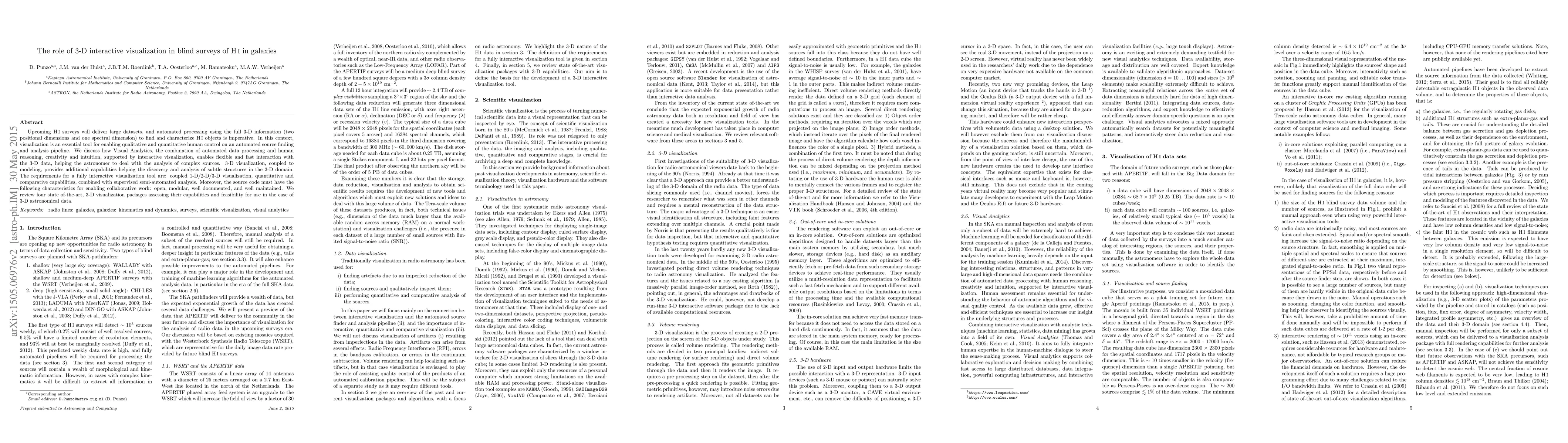 This paper explores the importance of 3-D interactive visualization in automated HI surveys for galaxies, emphasizing the role of Visual Analytics in combining human intuition with automated data processing. It reviews four advanced 3-D visualization tools, assessing their suitability for collaborative, open, and flexible analysis of complex astronomical data.
