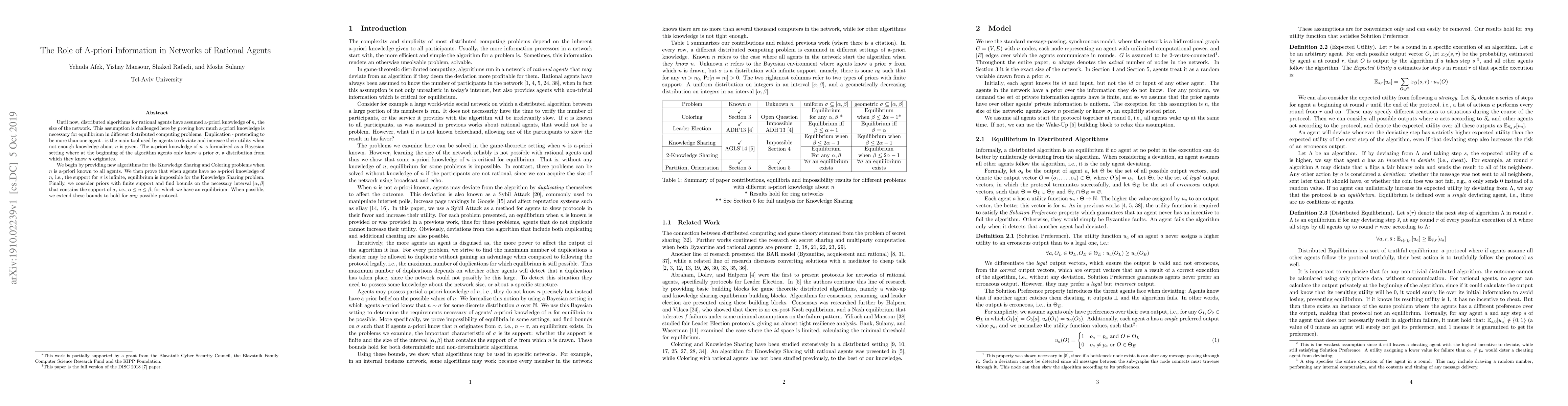 Until now, distributed algorithms for rational agents have assumed a-priori knowledge of $n$, the size of the network. This assumption is challenged here by proving how much a-priori knowledge is necessary for equilibrium in different distributed computing problems. Duplication - pretending to be more than one agent - is the main tool used by agents to deviate and increase their utility when not enough knowledge about $n$ is given. The a-priori knowledge of $n$ is formalized as a Bayesian setting where at the beginning of the algorithm agents only know a prior $\sigma$, a distribution from which they know $n$ originates. We begin by providing new algorithms for the Knowledge Sharing and Coloring problems when $n$ is a-priori known to all agents. We then prove that when agents have no a-priori knowledge of $n$, i.e., the support for $\sigma$ is infinite, equilibrium is impossible for the Knowledge Sharing problem. Finally, we consider priors with finite support and find bounds on the necessary interval $[\alpha,\beta]$ that contains the support of $\sigma$, i.e., $\alpha \leq n \leq \beta$, for which we have an equilibrium. When possible, we extend these bounds to hold for any possible protocol.