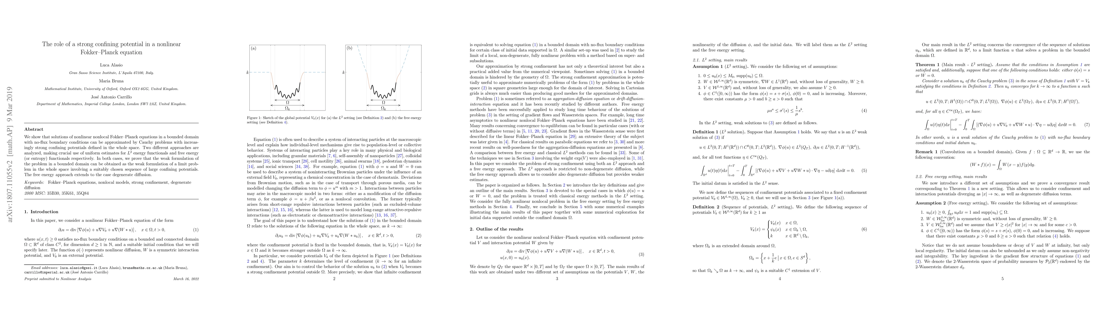 We show that solutions of nonlinear nonlocal Fokker--Planck equations in a bounded domain with no-flux boundary conditions can be approximated by Cauchy problems with increasingly strong confining potentials defined in the whole space. Two different approaches are analyzed, making crucial use of uniform estimates for $L^2$ energy functionals and free energy (or entropy) functionals respectively. In both cases, we prove that the weak formulation of the problem in a bounded domain can be obtained as the weak formulation of a limit problem in the whole space involving a suitably chosen sequence of large confining potentials. The free energy approach extends to the case degenerate diffusion.