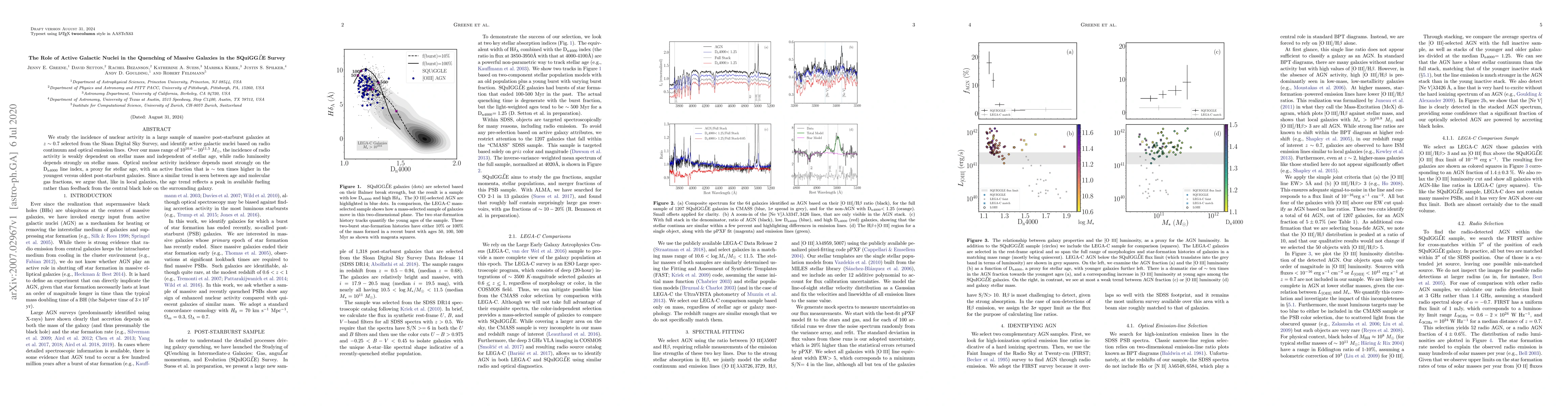 We study the incidence of nuclear activity in a large sample of massive post-starburst galaxies at z~0.7 selected from the Sloan Digital Sky Survey, and identify active galactic nuclei based on radio continuum and optical emission lines. Over our mass range of 10^10.6-10^11.5 Msun, the incidence of radio activity is weakly dependent on stellar mass and independent of stellar age, while radio luminosity depends strongly on stellar mass. Optical nuclear activity incidence depends most strongly on the Dn4000 line index, a proxy for stellar age, with an active fraction that is ~ten times higher in the youngest versus oldest post-starburst galaxies. Since a similar trend is seen between age and molecular gas fractions, we argue that, like in local galaxies, the age trend reflects a peak in available fueling rather than feedback from the central black hole on the surrounding galaxy.