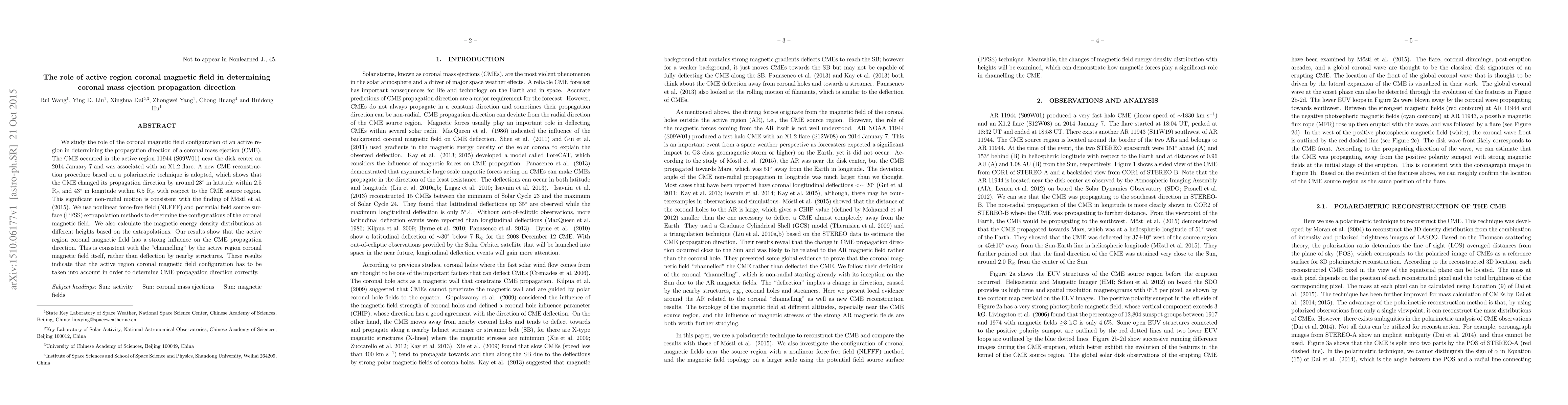 This study investigates the influence of the coronal magnetic field in active region 11944 on the propagation direction of a CME, revealing a significant directional change consistent with magnetic field channeling. The results emphasize the necessity of considering the active region's magnetic field configuration for accurate CME direction predictions.