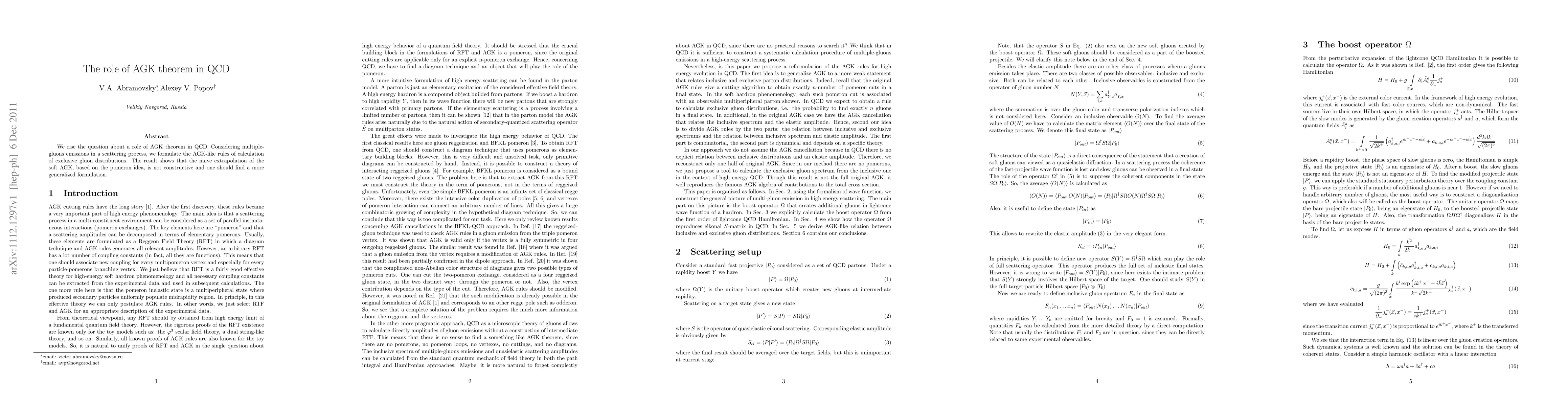 We rise the question about a role of AGK theorem in QCD. Considering multiple-gluons emissions in a scattering process, we formulate the AGK-like rules of calculation of exclusive gluon distributions. The result shows that the naive extrapolation of the soft AGK, based on the pomeron idea, is not constructive and one should find a more generalized formulation.