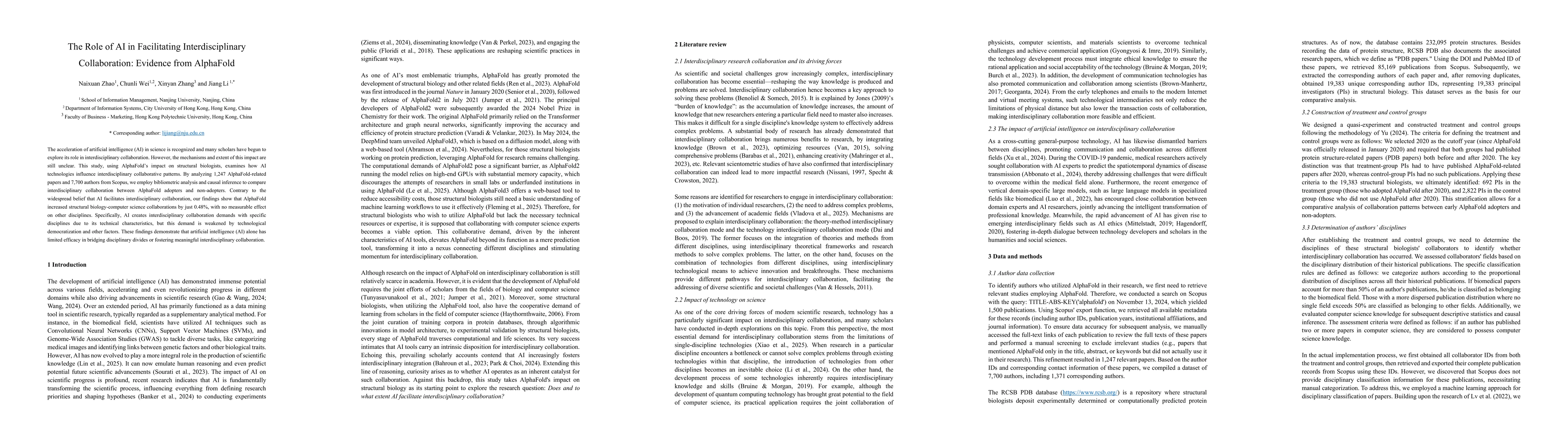 The acceleration of artificial intelligence (AI) in science is recognized and many scholars have begun to explore its role in interdisciplinary collaboration. However, the mechanisms and extent of this impact are still unclear. This study, using AlphaFold's impact on structural biologists, examines how AI technologies influence interdisciplinary collaborative patterns. By analyzing 1,247 AlphaFold-related papers and 7,700 authors from Scopus, we employ bibliometric analysis and causal inference to compare interdisciplinary collaboration between AlphaFold adopters and non-adopters. Contrary to the widespread belief that AI facilitates interdisciplinary collaboration, our findings show that AlphaFold increased structural biology-computer science collaborations by just 0.48%, with no measurable effect on other disciplines. Specifically, AI creates interdisciplinary collaboration demands with specific disciplines due to its technical characteristics, but this demand is weakened by technological democratization and other factors. These findings demonstrate that artificial intelligence (AI) alone has limited efficacy in bridging disciplinary divides or fostering meaningful interdisciplinary collaboration.