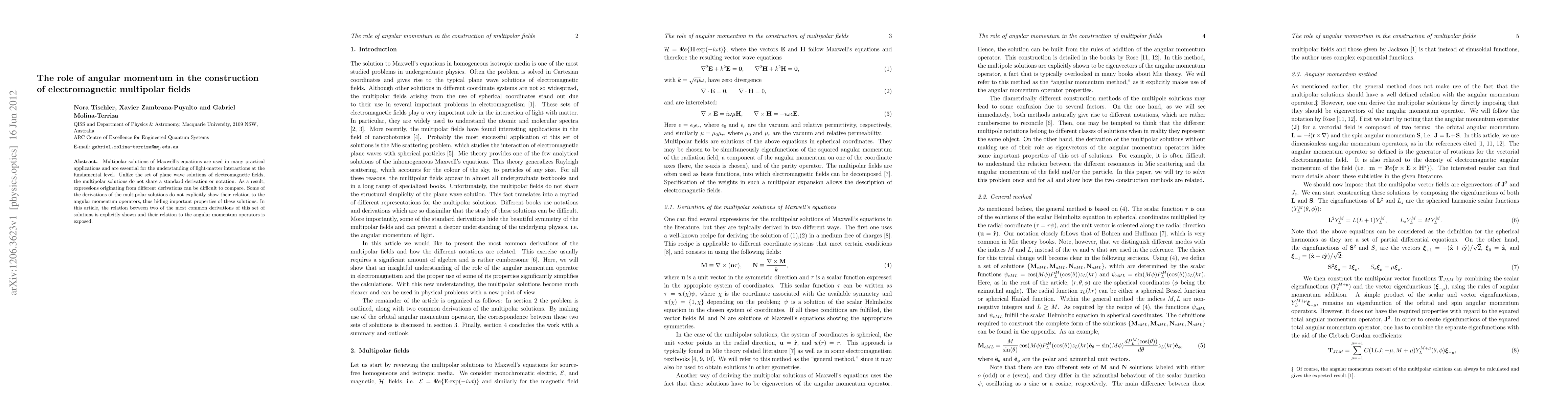 This paper explores the connection between angular momentum and multipolar electromagnetic field solutions derived from Maxwell's equations. It clarifies the often obscured relationship between different derivations of these solutions and their inherent angular momentum properties.