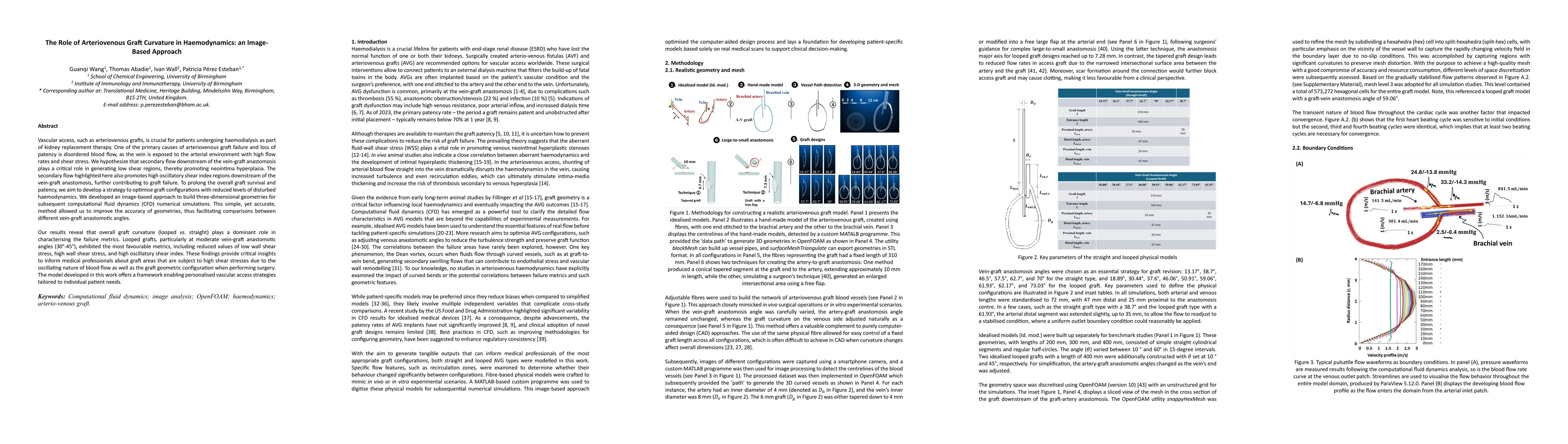 Vascular access, such as arteriovenous grafts, is crucial for patients undergoing haemodialysis as part of kidney replacement therapy. One of the primary causes of arteriovenous graft failure and loss of patency is disordered blood flow, as the vein is exposed to the arterial environment with high flow rates and shear stress. We hypothesize that secondary flow downstream of the vein-graft anastomosis plays a critical role in generating low shear regions, thereby promoting neointima hyperplasia. The secondary flow highlighted here also promotes high oscillatory shear index regions downstream of the vein-graft anastomosis, further contributing to graft failure. To prolong the overall graft survival and patency, we aim to develop a strategy to optimise graft configurations with reduced levels of disturbed haemodynamics. We developed an image-based approach to build three-dimensional geometries for subsequent computational fluid dynamics (CFD) numerical simulations. This simple, yet accurate, method allowed us to improve the accuracy of geometries, thus facilitating comparisons between different vein-graft anastomotic angles. Our results reveal that overall graft curvature (looped vs. straight) plays a dominant role in characterising the failure metrics. Looped grafts, particularly at moderate vein-graft anastomotic angles (30{\deg}-45{\deg}), exhibited the most favourable metrics, including reduced values of low wall shear stress, high wall shear stress, and high oscillatory shear index. These findings provide critical insights to inform medical professionals about graft areas that are subject to high shear stresses due to the oscillating nature of blood flow as well as the graft geometric configuration when performing surgery. The model developed in this work offers a framework enabling personalised vascular access strategies tailored to individual patient needs.