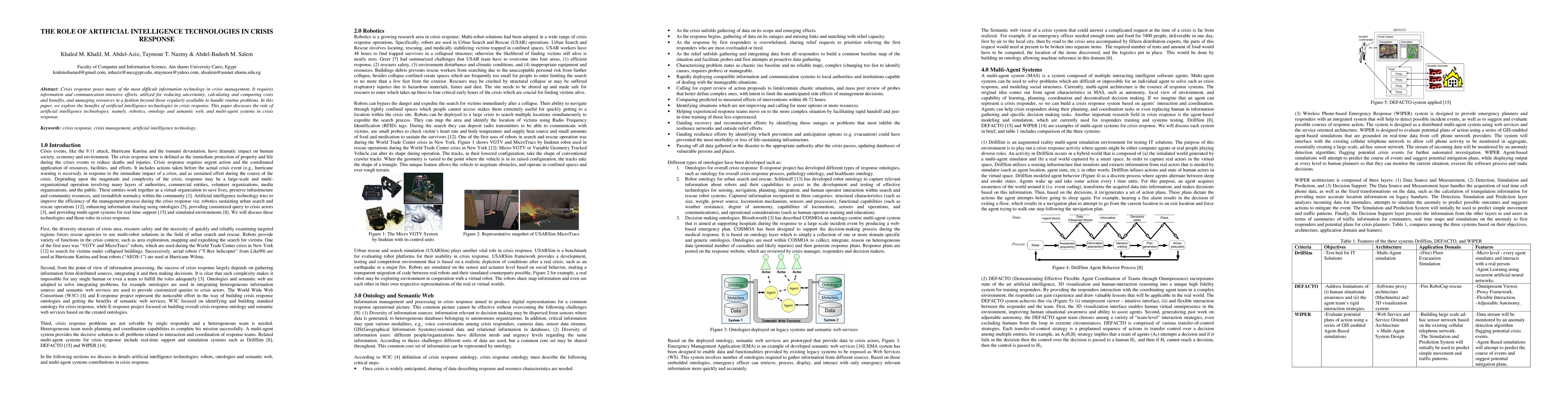 The technical contribution of this research is the development of a framework for integrating AI techniques into crisis response systems.