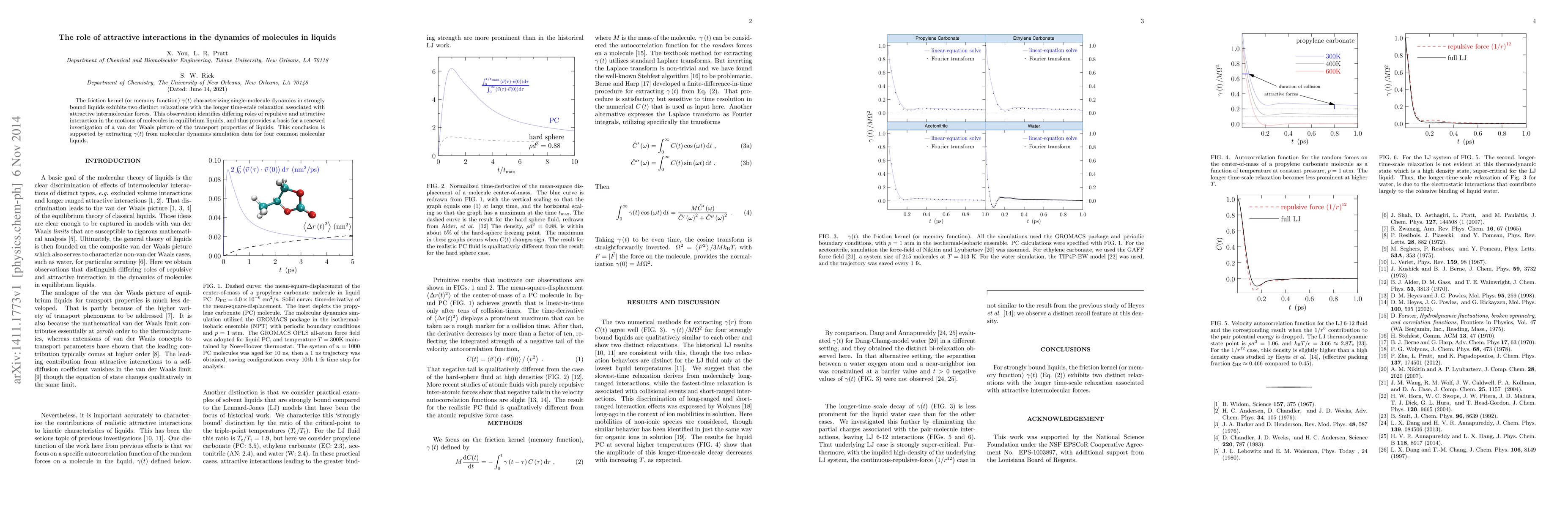 The paper investigates how attractive interactions influence the dynamics of molecules in liquids, revealing two distinct relaxations in the friction kernel, with the longer time-scale linked to attractive forces. This suggests a renewed focus on van der Waals forces in understanding liquid transport properties, supported by molecular dynamics simulations.