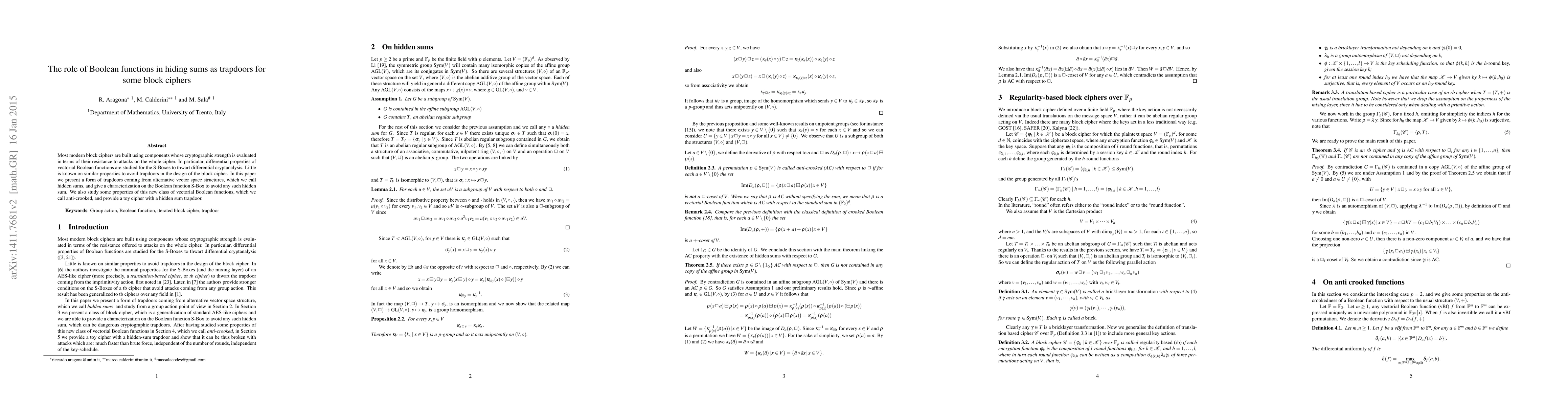 Researchers discovered a vulnerability in modern block ciphers that can create 'trapdoors' through hidden sums of Boolean functions, which could lead to easier attacks on the ciphers.