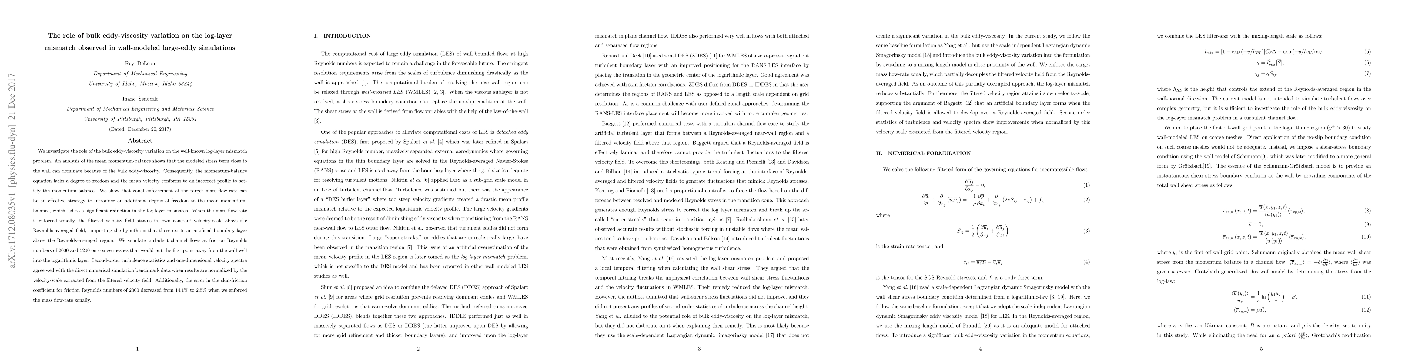 We investigate the role of the bulk eddy-viscosity variation on the well-known log-layer mismatch problem. An analysis of the mean momentum-balance shows that the modeled stress term close to the wall can dominate because of the bulk eddy-viscosity. Consequently, the momentum-balance equation lacks a degree-of-freedom and the mean velocity conforms to an incorrect profile to satisfy the momentum-balance. We show that zonal enforcement of the target mass flow-rate can be an effective strategy to introduce an additional degree of freedom to the mean momentum-balance, which led to a significant reduction in the log-layer mismatch. When the mass flow-rate is enforced zonally, the filtered velocity field attains its own constant velocity-scale above the Reynolds-averaged field, supporting the hypothesis that there exists an artificial boundary layer above the Reynolds-averaged region. We simulate turbulent channel flows at friction Reynolds numbers of 2000 and 5200 on coarse meshes that would put the first point away from the wall well into the logarithmic layer. Second-order turbulence statistics and one-dimensional velocity spectra agree well with the direct numerical simulation benchmark data when results are normalized by the velocity-scale extracted from the filtered velocity field. Additionally, the error in the skin-friction coefficient for friction Reynolds numbers of 2000 decreased from $14.1\%$ to $2.5\%$ when we enforced the mass flow-rate zonally.