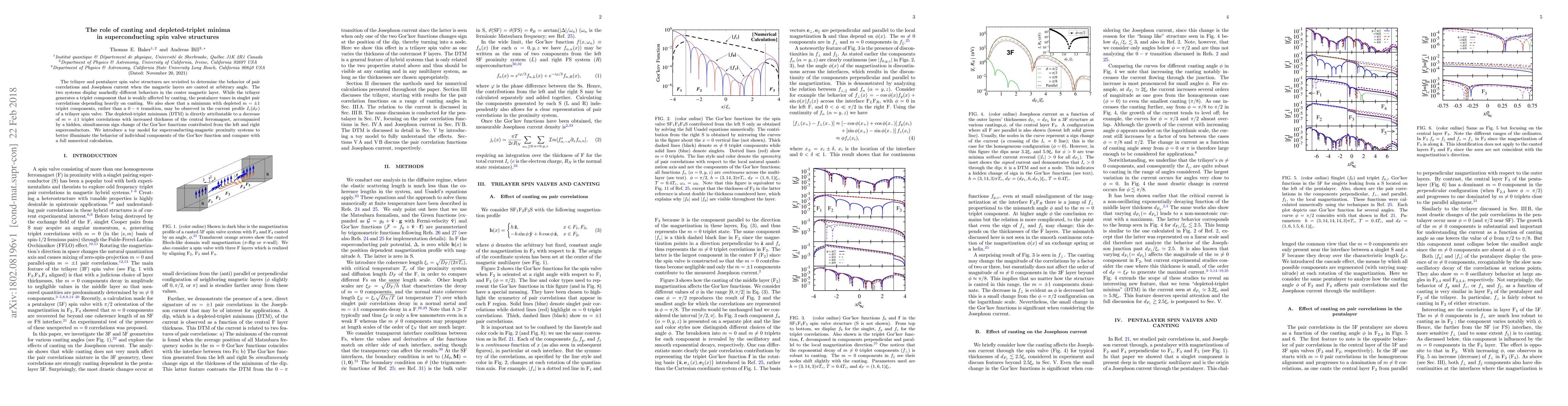 This paper investigates spin valve structures with canted magnetic layers, revealing distinct pair correlation behaviors in trilayer and pentalayer systems. The trilayer exhibits a depleted-triplet minimum in the Josephson current, while the pentalayer shows strong dependence of singlet pair correlations on canting angle.