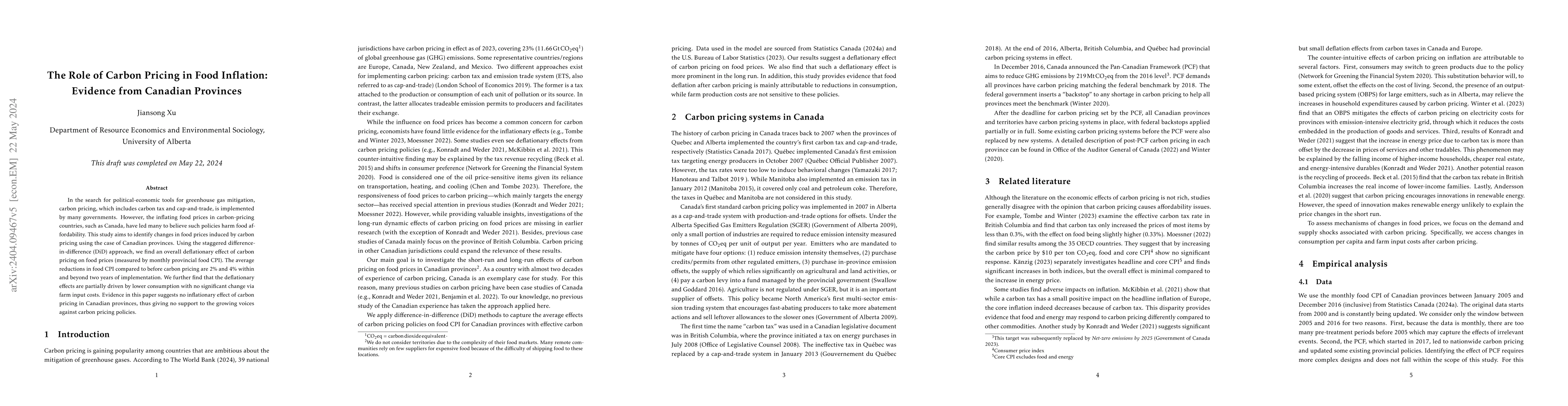 This research is novel because it provides new insights into the impact of carbon pricing on food prices, which has significant implications for policymakers and stakeholders in the food industry.