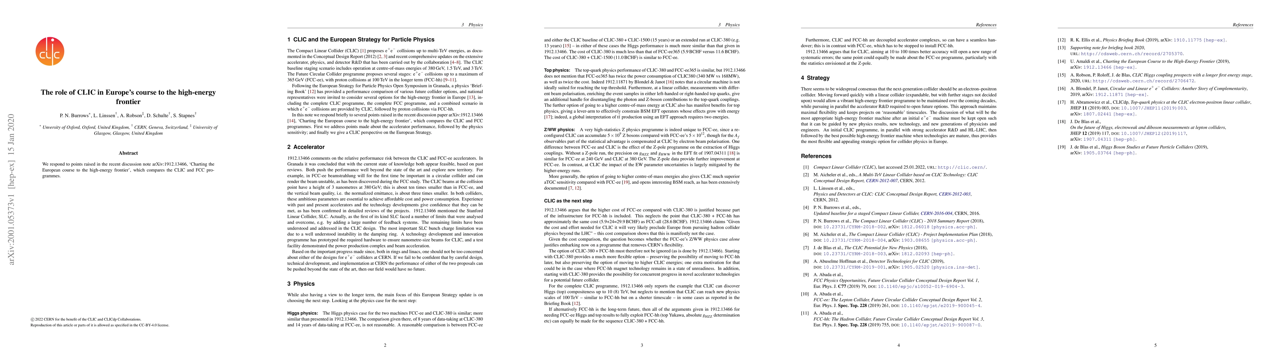 We respond to points raised in the recent discussion note arXiv:1912.13466, "Charting the European course to the high-energy frontier", which compares the CLIC and FCC programmes.