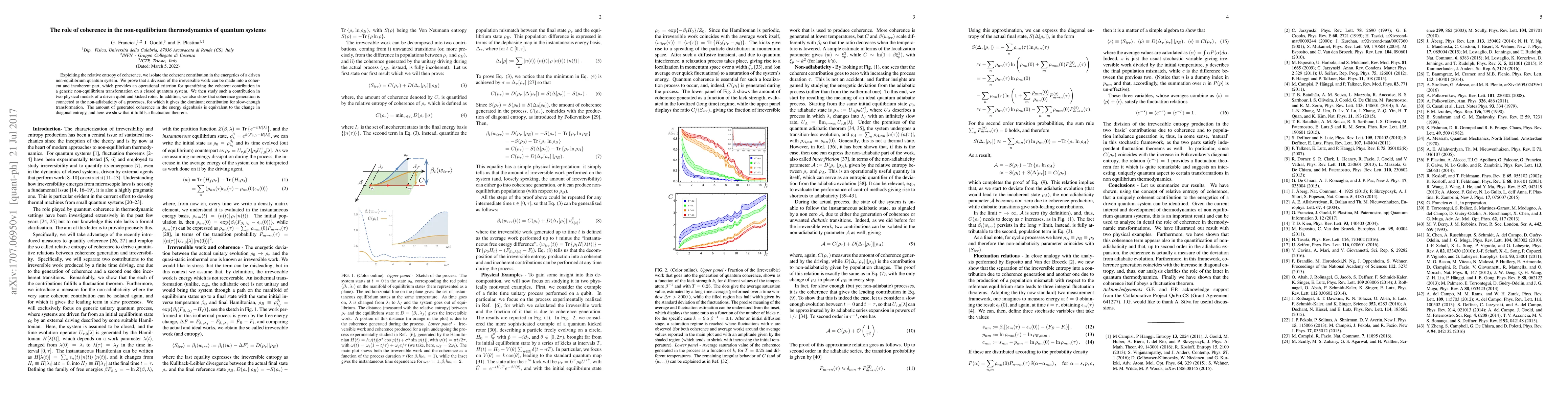 This paper explores the role of coherence in non-equilibrium thermodynamics of quantum systems, demonstrating how relative entropy of coherence can quantify the coherent contribution to irreversible work. It establishes a division of work into coherent and incoherent parts and shows that coherence generation is linked to non-adiabatic processes, fulfilling a fluctuation theorem.