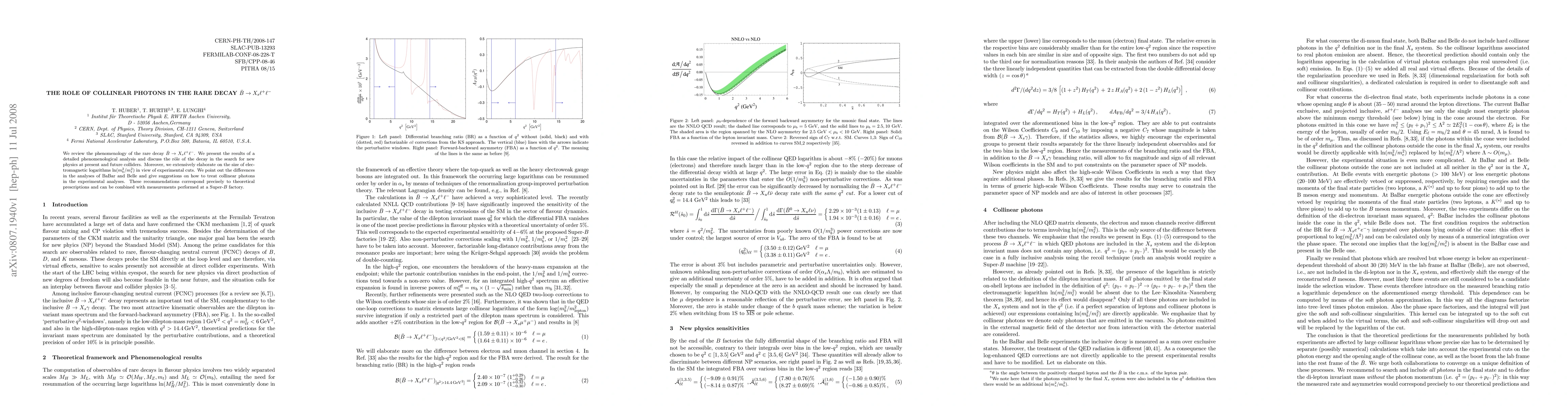 We review the phenomenology of the rare decay \bar B -> X_s l+ l-. We present the results of a detailed phenomenological analysis and discuss the role of the decay in the search for new physics at present and future colliders. Moreover, we extensively elaborate on the size of electromagnetic logarithms ln(m_b^2/m_l^2) in view of experimental cuts. We point out the differences in the analyses of BaBar and Belle and give suggestions on how to treat collinear photons in the experimental analyses. These recommendations correspond precisely to theoretical prescriptions and can be combined with measurements performed at a Super-B factory.