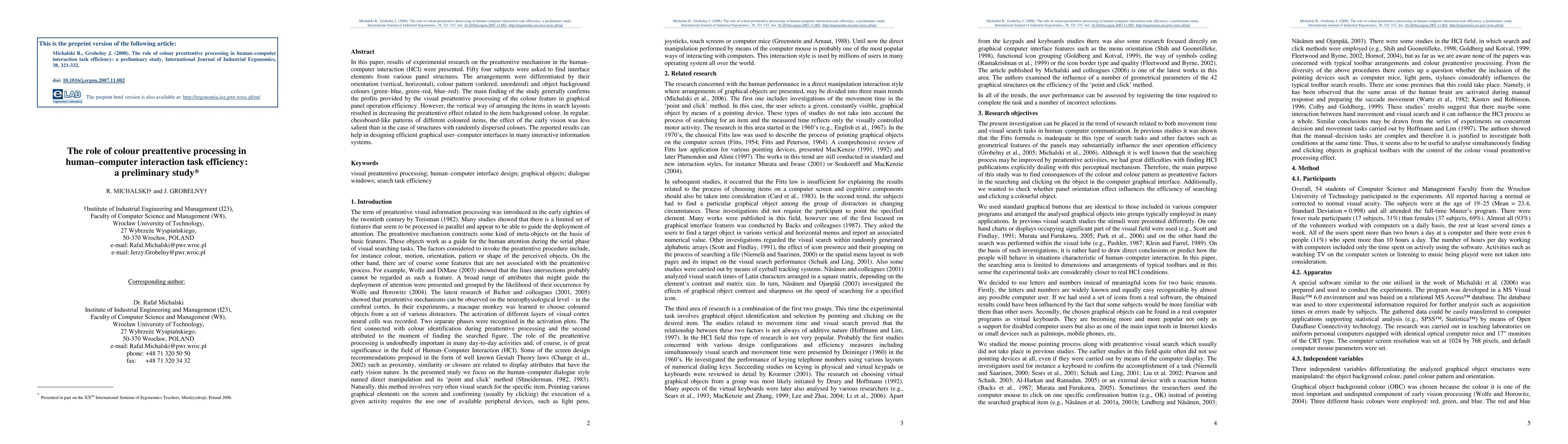 This study investigates the impact of colour preattentive processing on human-computer interaction efficiency, revealing that colour features enhance graphical panel operation. However, vertical arrangements and chessboard-like patterns diminish this effect, suggesting design improvements for more efficient interfaces.