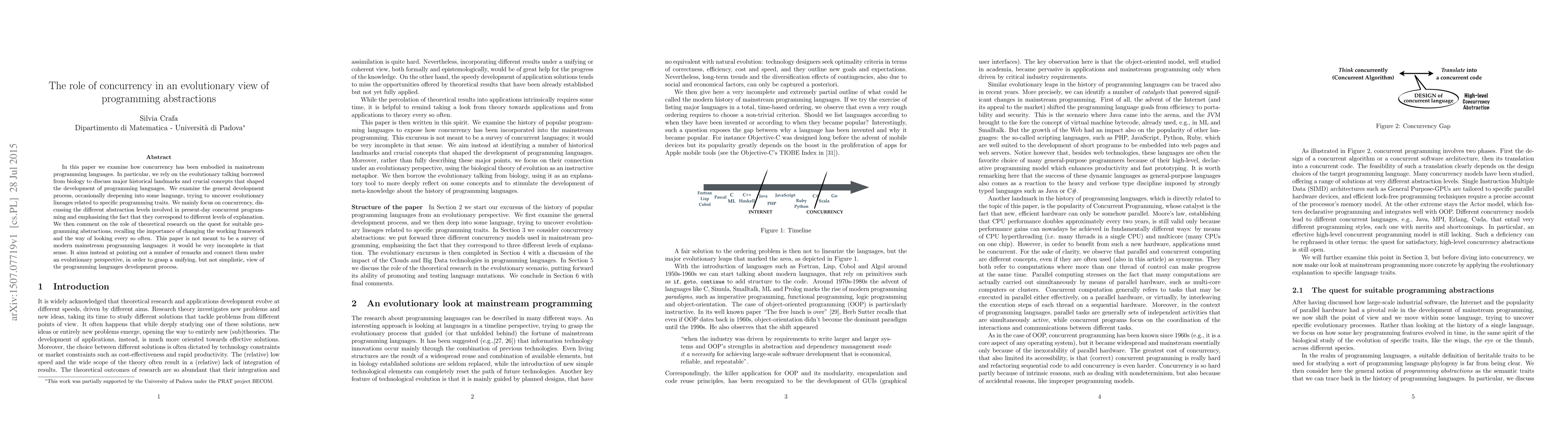 In this paper we examine how concurrency has been embodied in mainstream programming languages. In particular, we rely on the evolutionary talking borrowed from biology to discuss major historical landmarks and crucial concepts that shaped the development of programming languages. We examine the general development process, occasionally deepening into some language, trying to uncover evolutionary lineages related to specific programming traits. We mainly focus on concurrency, discussing the different abstraction levels involved in present-day concurrent programming and emphasizing the fact that they correspond to different levels of explanation. We then comment on the role of theoretical research on the quest for suitable programming abstractions, recalling the importance of changing the working framework and the way of looking every so often. This paper is not meant to be a survey of modern mainstream programming languages: it would be very incomplete in that sense. It aims instead at pointing out a number of remarks and connect them under an evolutionary perspective, in order to grasp a unifying, but not simplistic, view of the programming languages development process.