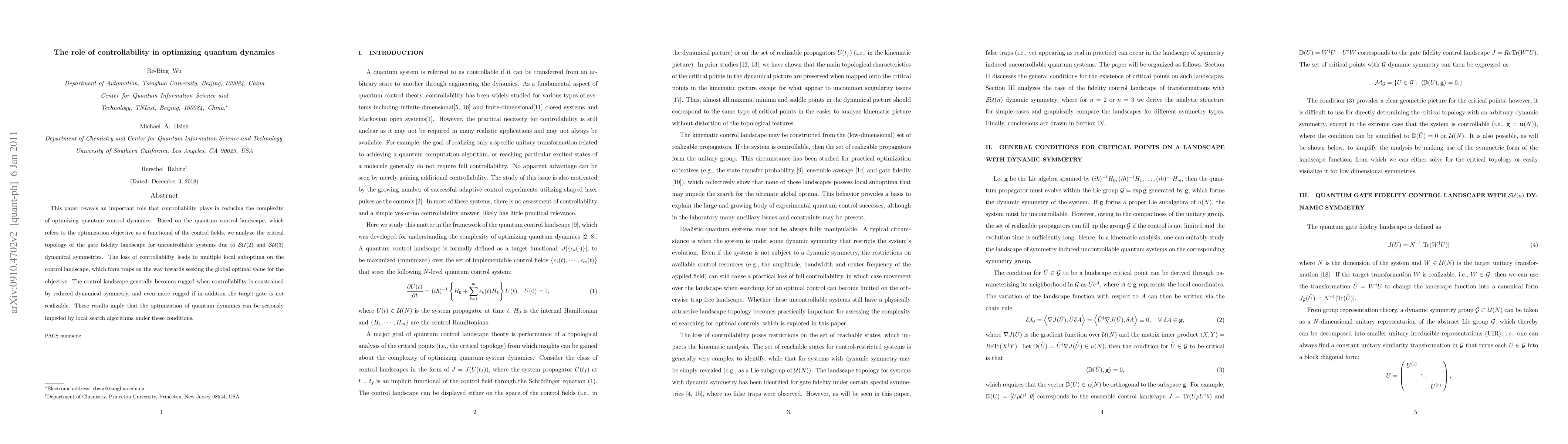 This research highlights the significant impact of controllability on optimizing quantum systems. Using topology analysis of quantum control landscapes, it shows that higher controllability reduces landscape ruggedness, improving global optimum search efficiency. The study demonstrates this through gate fidelity control in a SU(2) dynamic symmetry system, revealing that loss of controllability increases local false traps, while controllable systems avoid them.