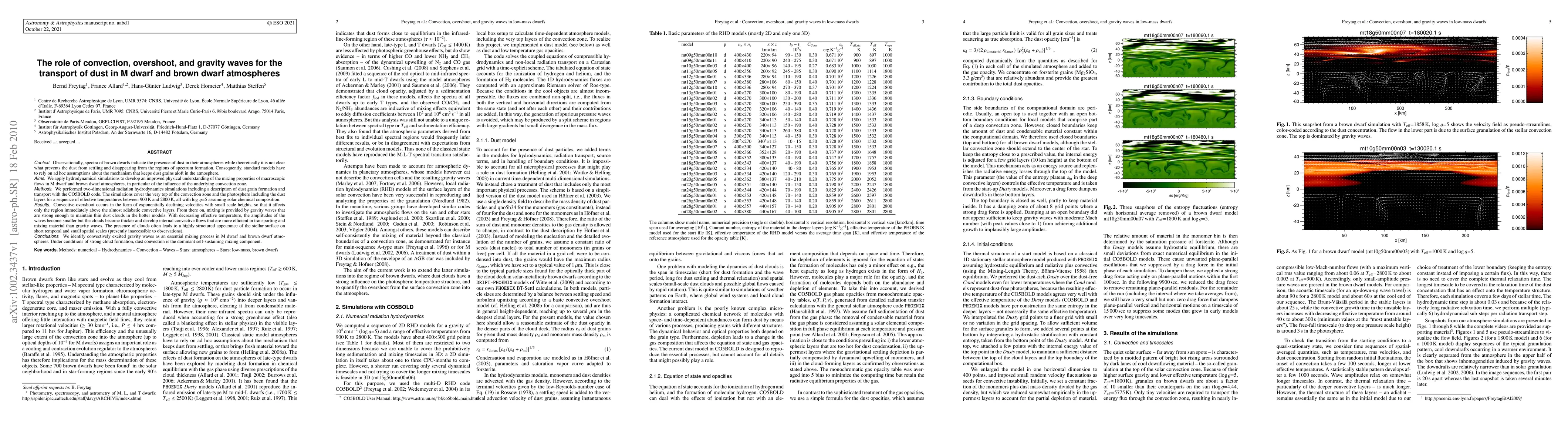 This paper uses hydrodynamical simulations to explore how convection, convective overshoot, and gravity waves transport dust in M dwarf and brown dwarf atmospheres. The simulations reveal that gravity waves maintain thin dust clouds in hotter models, while in cooler models, dust convection becomes the dominant mixing mechanism due to thicker dust clouds and internal convective flows.