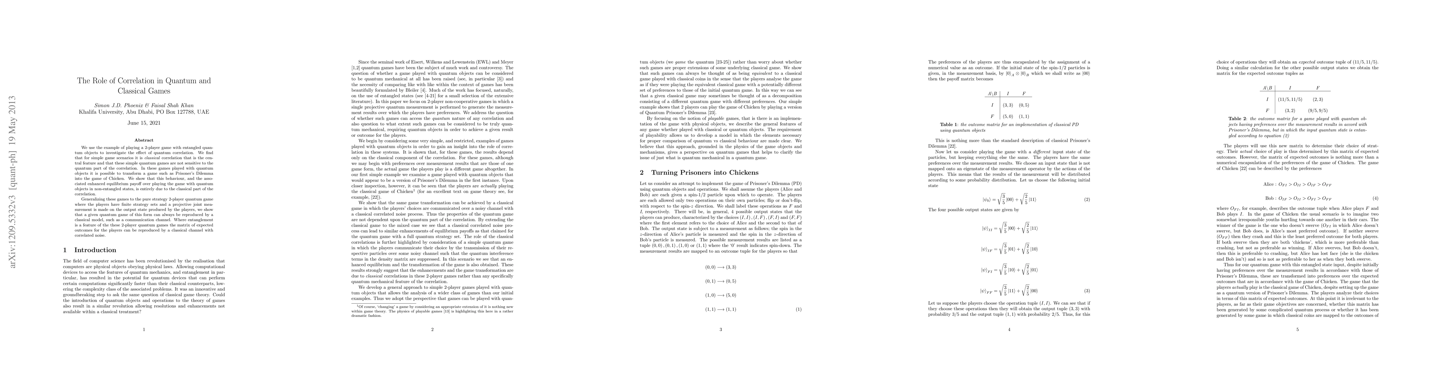 This paper investigates quantum correlation in 2-player games using entangled quantum objects, finding that classical correlation is more significant than quantum correlation in simple scenarios. It demonstrates that quantum games can be replicated by classical models, emphasizing the role of classical correlation in determining outcomes.