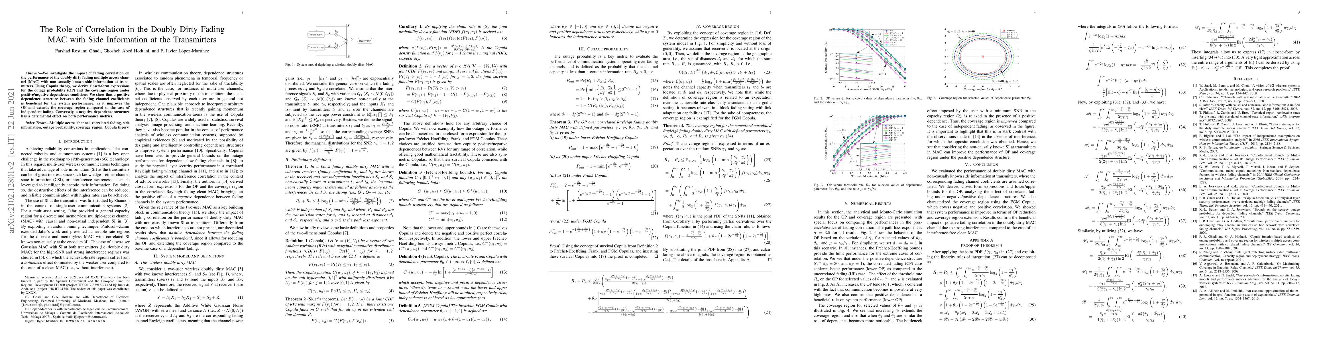 This paper examines how fading correlation affects the doubly dirty fading MAC with transmitter side information, deriving expressions for outage probability and coverage region using Copula theory. It finds that positive correlation enhances performance, while negative correlation worsens it.