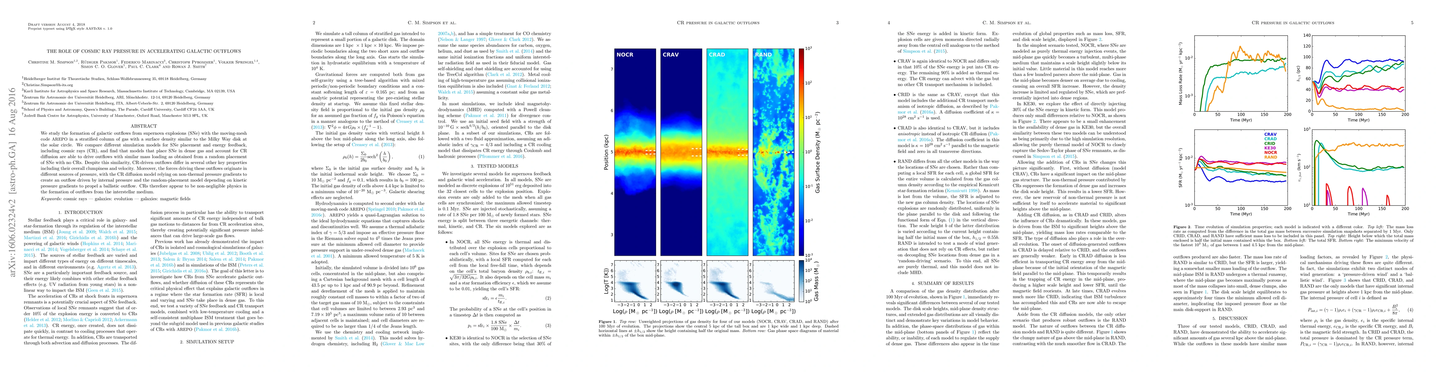 We study the formation of galactic outflows from supernova explosions (SNe) with the moving-mesh code AREPO in a stratified column of gas with a surface density similar to the Milky Way disk at the solar circle. We compare different simulation models for SNe placement and energy feedback, including cosmic rays (CR), and find that models that place SNe in dense gas and account for CR diffusion are able to drive outflows with similar mass loading as obtained from a random placement of SNe with no CRs. Despite this similarity, CR-driven outflows differ in several other key properties including their overall clumpiness and velocity. Moreover, the forces driving these outflows originate in different sources of pressure, with the CR diffusion model relying on non-thermal pressure gradients to create an outflow driven by internal pressure and the random-placement model depending on kinetic pressure gradients to propel a ballistic outflow. CRs therefore appear to be non-negligible physics in the formation of outflows from the interstellar medium.
