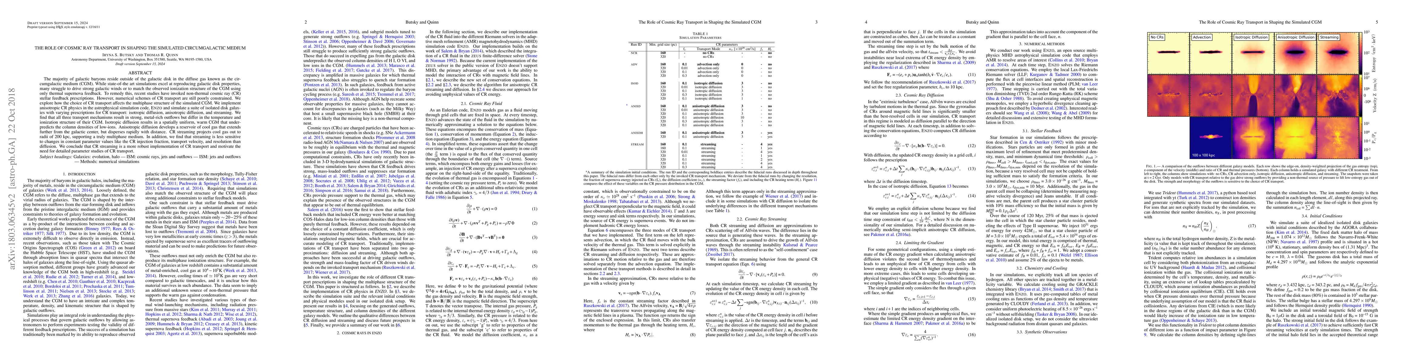 The majority of galactic baryons reside outside of the galactic disk in the diffuse gas known as the circumgalactic medium (CGM). While state-of-the art simulations excel at reproducing galactic disk properties, many struggle to drive strong galactic winds or to match the observed ionization structure of the CGM using only thermal supernova feedback. To remedy this, recent studies have invoked non-thermal cosmic ray (CR) stellar feedback prescriptions. However, numerical schemes of CR transport are still poorly constrained. We explore how the choice of CR transport affects the multiphase structure of the simulated CGM. We implement anisotropic CR physics in the astrophysical simulation code, {\sc Enzo} and simulate a suite of isolated disk galaxies with varying prescriptions for CR transport: isotropic diffusion, anisotropic diffusion, and streaming. We find that all three transport mechanisms result in strong, metal-rich outflows but differ in the temperature and ionization structure of their CGM. Isotropic diffusion results in a spatially uniform, warm CGM that underpredicts the column densities of low-ions. Anisotropic diffusion develops a reservoir of cool gas that extends further from the galactic center, but disperses rapidly with distance. CR streaming projects cool gas out to radii of 200 kpc, supporting a truly multiphase medium. In addition, we find that streaming is less sensitive to changes in constant parameter values like the CR injection fraction, transport velocity, and resolution than diffusion. We conclude that CR streaming is a more robust implementation of CR transport and motivate the need for detailed parameter studies of CR transport.