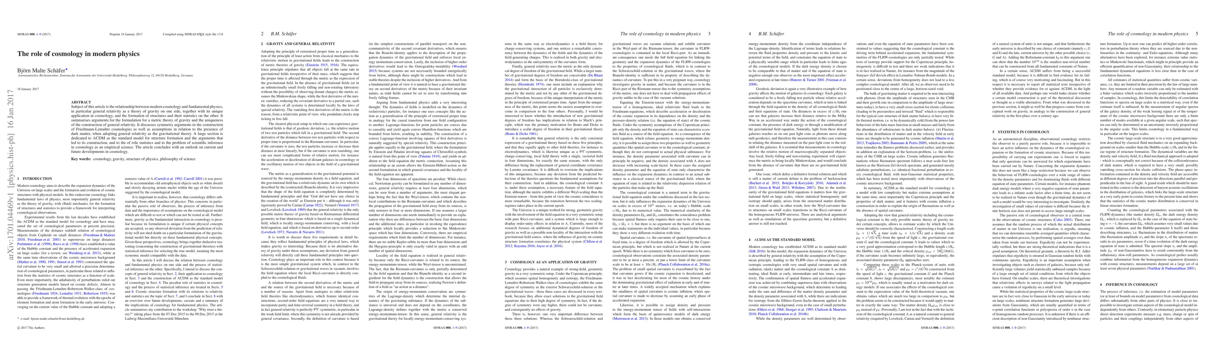 This paper explores the relationship between modern cosmology and fundamental physics, focusing on general relativity and its application in structure formation, while discussing its limitations and current developments.