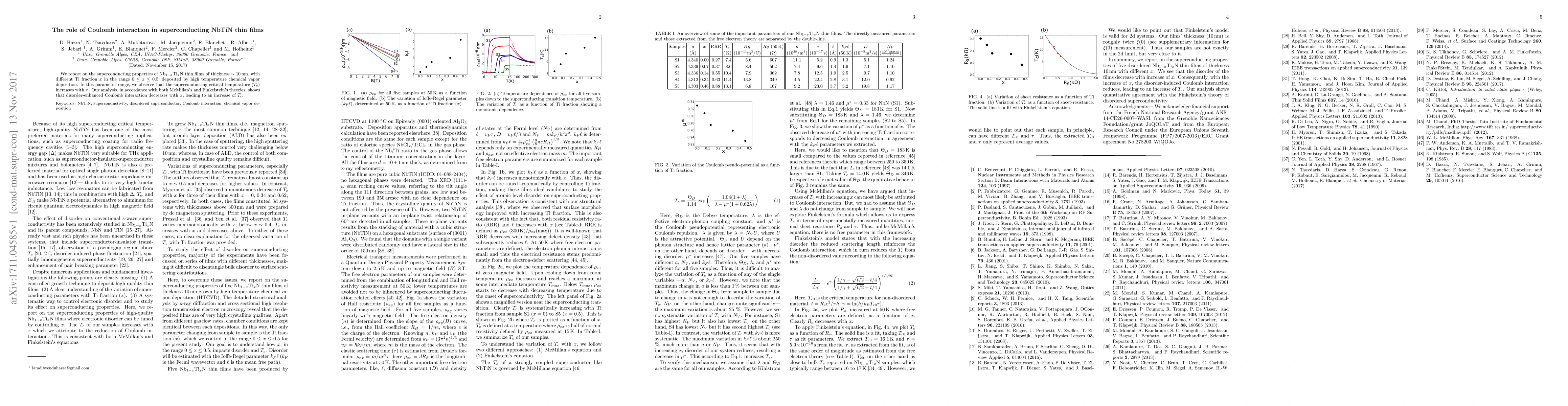 Researchers studied superconducting NbTiN thin films with varying Ti fractions and found that increasing Ti content boosts the critical temperature of superconductivity. This is attributed to reduced Coulomb interaction between atoms.