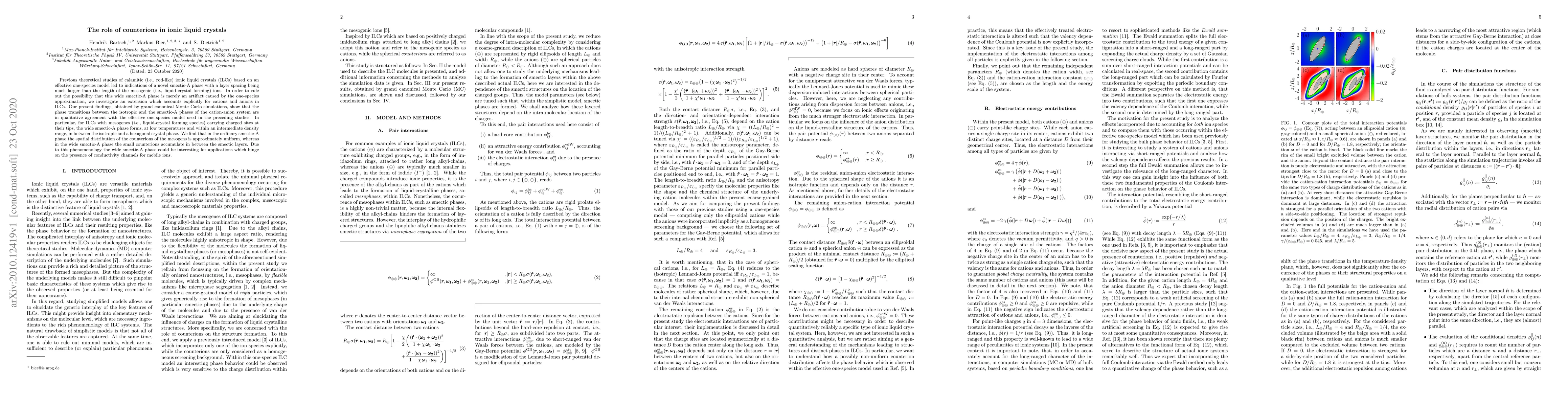 This study investigates the role of counterions in calamitic ionic liquid crystals (ILCs) using grand canonical Monte Carlo simulations, finding that the inclusion of cations and anions does not alter the phase transitions predicted by a one-species model. The wide smectic-A phase, characterized by counterion accumulation between layers, suggests potential applications in conductive ion-based technologies.