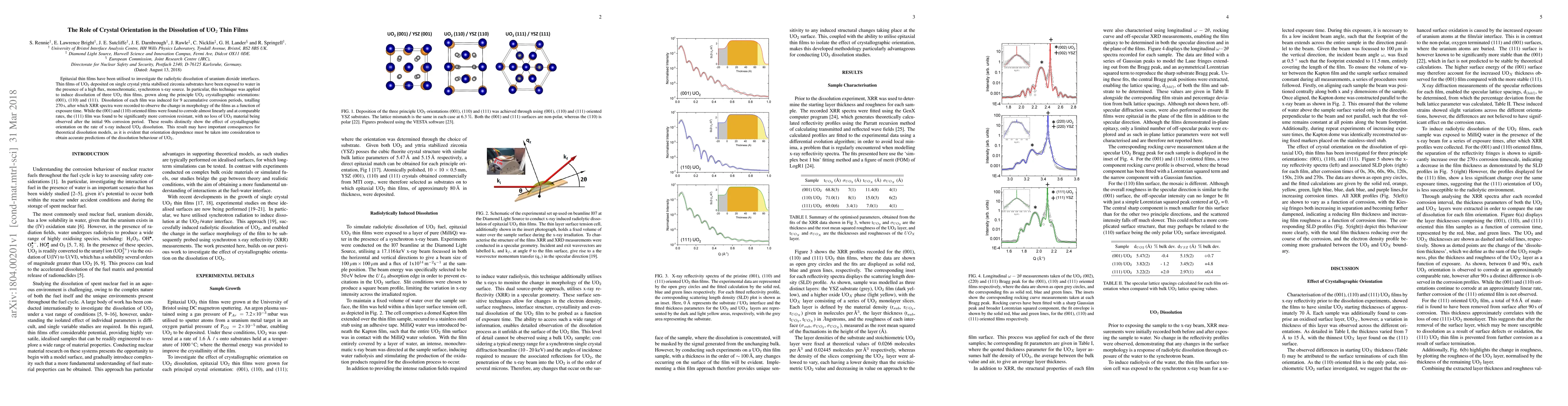 Epitaxial thin films have been utilised to investigate the radiolytic dissolution of uranium dioxide interfaces. Thin films of UO$_2$ deposited on single crystal yttria stabilised zirconia substrates have been exposed to water in the presence of a high flux, monochromatic, synchrotron x-ray source. In particular, this technique was applied to induce dissolution of three UO$_2$ thin films, grown along the principle UO$_2$ crystallographic orientations: (001), (110) and (111). Dissolution of each film was induced for 9 accumulative corrosion periods, totalling 270s, after which XRR spectra were recorded to observe the change in morphology of the films as a function of exposure time. While the (001) and (110) oriented films were found to corrode almost linearly and at comparable rates, the (111) film was found to be significantly more corrosion resistant, with no loss of UO$_2$ material being observed after the initial 90s corrosion period. These results distinctly show the effect of crystallographic orientation on the rate of x-ray induced UO$_2$ dissolution. This result may have important consequences for theoretical dissolution models, as it is evident that orientation dependence must be taken into consideration to obtain accurate predictions of the dissolution behaviour of UO$_2$.