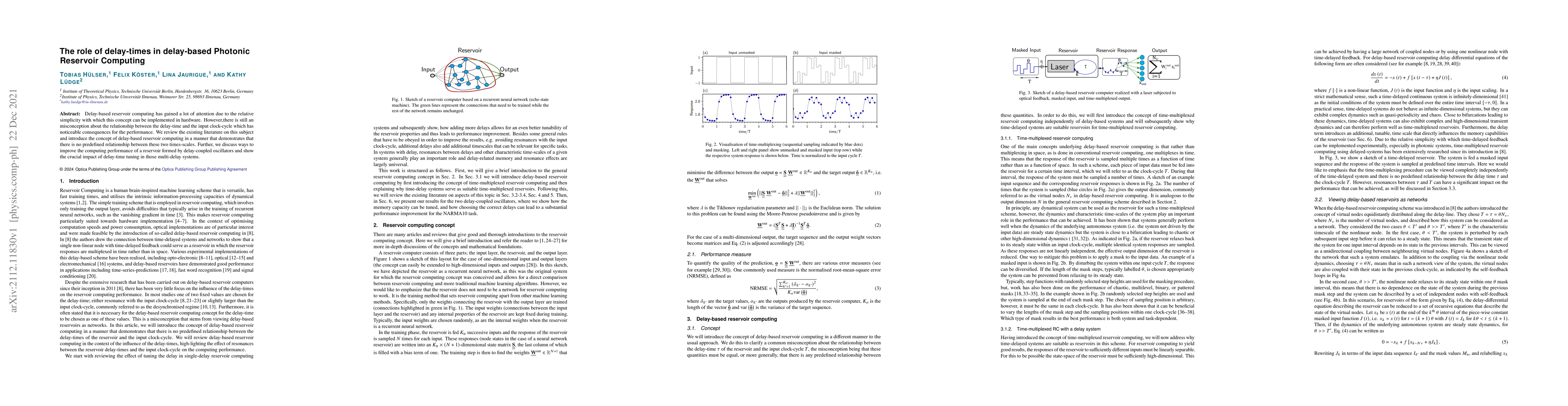 This paper reviews the misconceptions regarding the relationship between delay-times and input clock-cycles in delay-based photonic reservoir computing, clarifying that no predefined relationship exists. It also explores methods to enhance computing performance through optimal delay-time tuning in multi-delay systems.