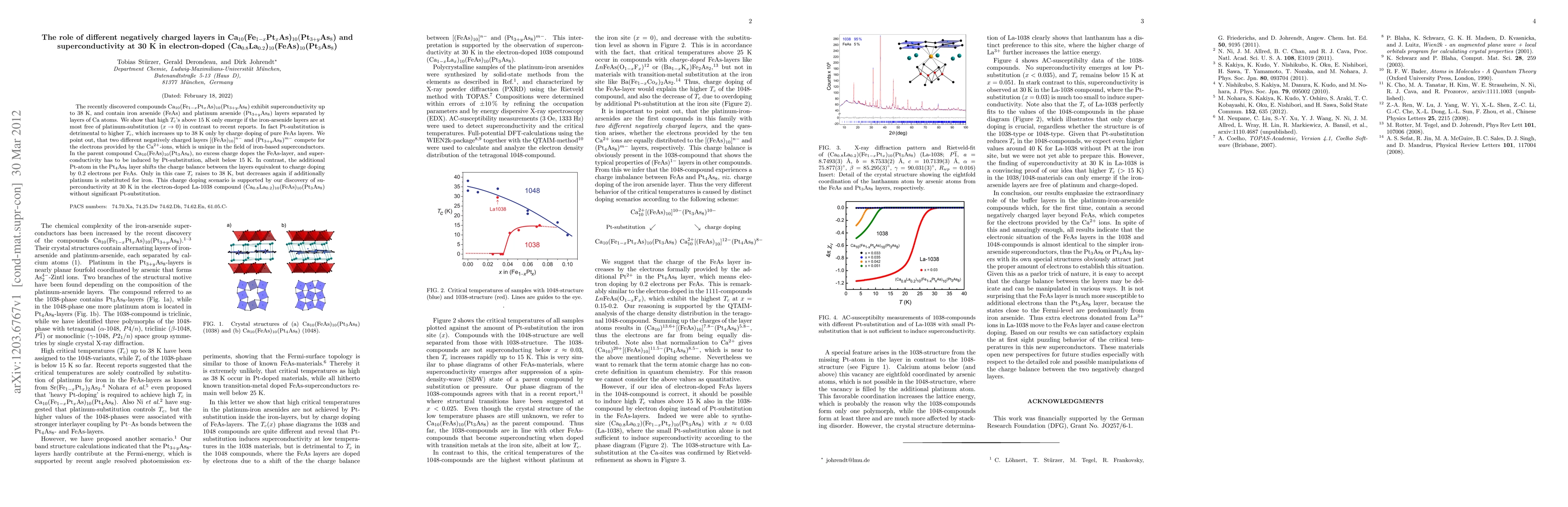 The recently discovered compounds Ca10(Fe1-xPtxAs)10(Pt3+yAs8) exhibit superconductivity up to 38 K, and contain iron arsenide (FeAs) and platinum arsenide (Pt3+yAs8) layers separated by layers of Ca atoms. We show that high Tc's above 15 K only emerge if the iron-arsenide layers are at most free of platinum-substitution (x \rightarrow 0) in contrast to recent reports. In fact Pt-substitution is detrimental to higher Tc, which increases up to 38 K only by charge doping of pure FeAs layers. We point out, that two different negatively charged layers [(FeAs)10]n- and (Pt3+yAs8)m- compete for the electrons provided by the Ca2+ ions, which is unique in the field of iron-based superconductors. In the parent compound Ca10(FeAs)10(Pt3As8), no excess charge dopes the FeAs-layer, and superconductivity has to be induced by Pt-substitution, albeit below 15 K. In contrast, the additional Pt-atom in the Pt4As8layer shifts the charge balance between the layers equivalent to charge doping by 0.2 electrons per FeAs. Only in this case Tc raises to 38 K, but decreases again if additionally platinum is substituted for iron. This charge doping scenario is supported by our discovery of superconductivity at 30 K in the electron-doped La-1038 compound (Ca0.8La0.2)10(FeAs)10(Pt3As8) without significant Pt-substitution.