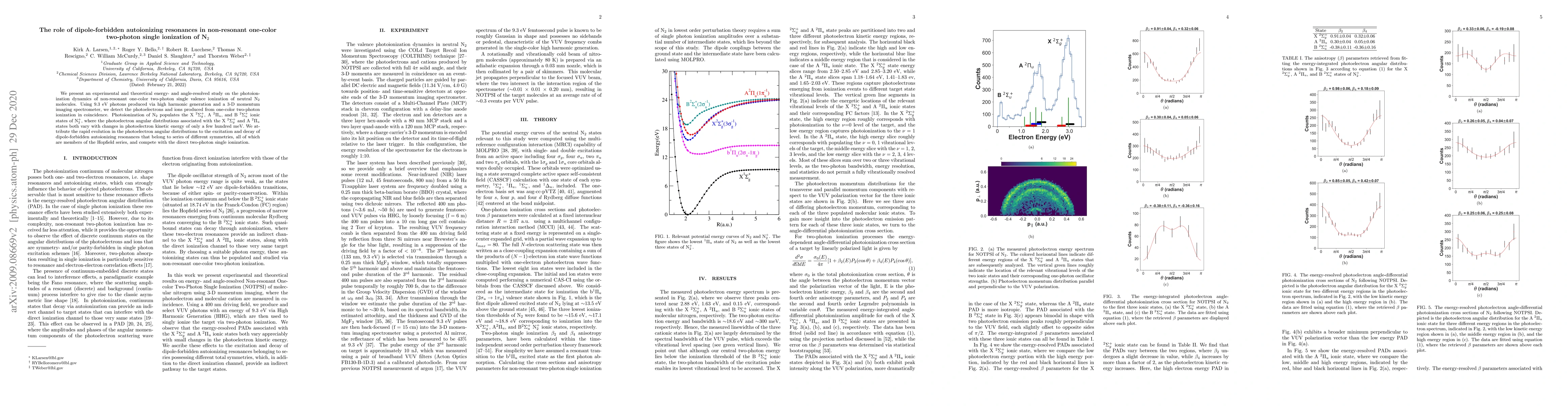 We present an experimental and theoretical energy- and angle-resolved study on the photoionization dynamics of non-resonant one-color two-photon single valence ionization of neutral N$_2$ molecules. Using 9.3 eV photons produced via high harmonic generation and a 3-D momentum imaging spectrometer, we detect the photoelectrons and ions produced from one-color two-photon ionization in coincidence. Photoionization of N$_2$ populates the X $^2\Sigma^+_g$, A $^2\Pi_u$, and B $^2\Sigma^+_u$ ionic states of N$_2^+$, where the photoelectron angular distributions associated with the X $^2\Sigma^+_g$ and A $^2\Pi_u$ states both vary with changes in photoelectron kinetic energy of only a few hundred meV. We attribute the rapid evolution in the photoelectron angular distributions to the excitation and decay of dipole-forbidden autoionizing resonances that belong to series of different symmetries, all of which are members of the Hopfield series, and compete with the direct two-photon single ionization.