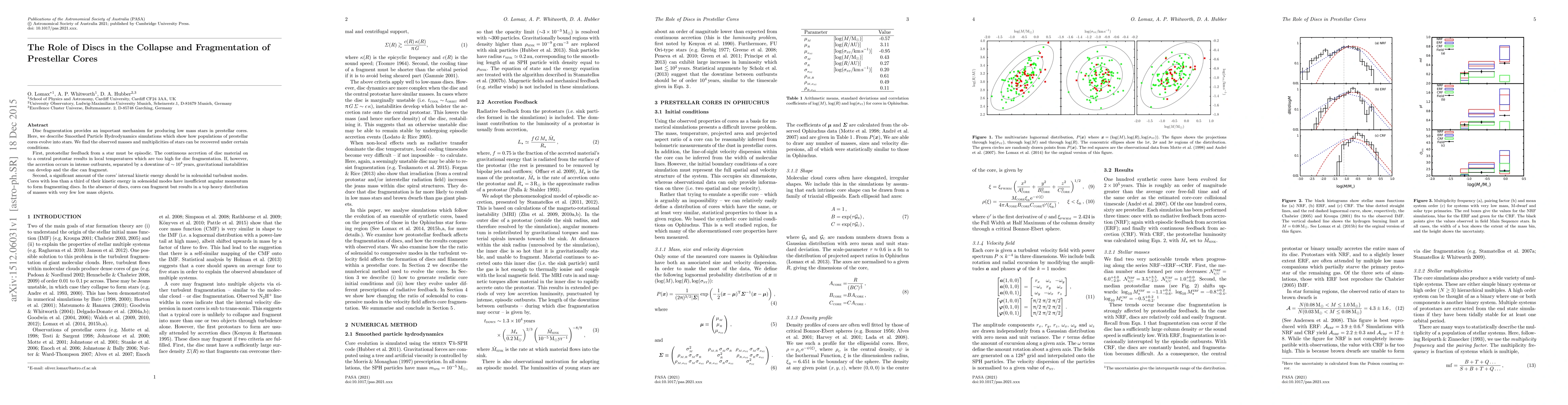 Disc fragmentation provides an important mechanism for producing low mass stars in prestellar cores. Here, we describe Smoothed Particle Hydrodynamics simulations which show how populations of prestellar cores evolve into stars. We find the observed masses and multiplicities of stars can be recovered under certain conditions. First, protostellar feedback from a star must be episodic. The continuous accretion of disc material on to a central protostar results in local temperatures which are too high for disc fragmentation. If, however, the accretion occurs in intense outbursts, separated by a downtime of $\sim10^4\,\mathrm{years}$, gravitational instabilities can develop and the disc can fragment. Second, a significant amount of the cores' internal kinetic energy should be in solenoidal turbulent modes. Cores with less than a third of their kinetic energy in solenoidal modes have insufficient angular momentum to form fragmenting discs. In the absence of discs, cores can fragment but results in a top heavy distribution of masses with very few low mass objects.
