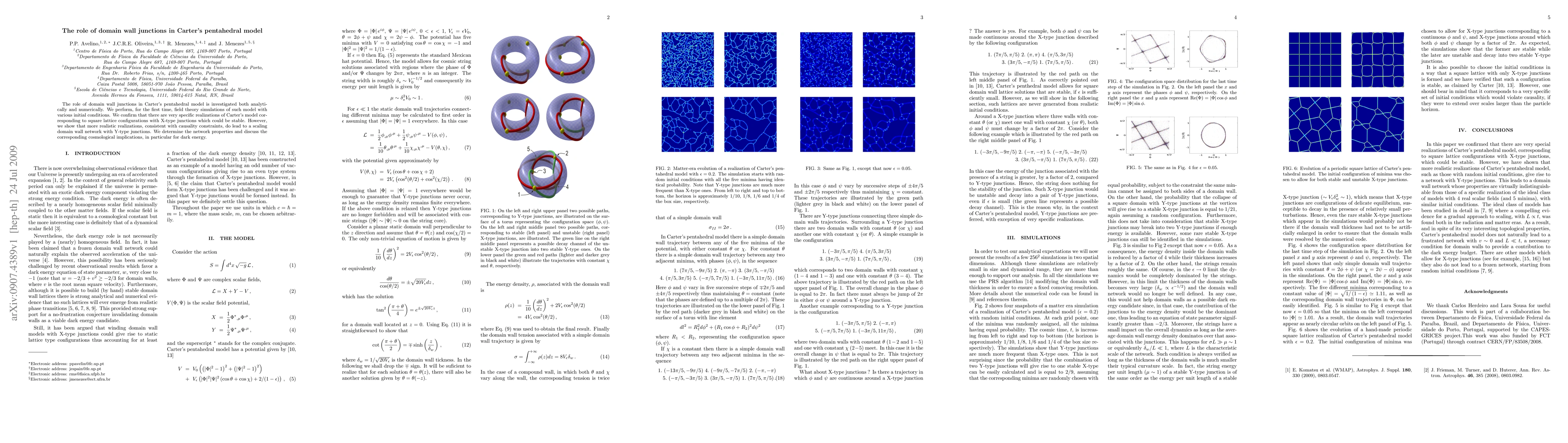The role of domain wall junctions in Carter's pentahedral model is investigated both analytically and numerically. We perform, for the first time, field theory simulations of such model with various initial conditions. We confirm that there are very specific realizations of Carter's model corresponding to square lattice configurations with X-type junctions which could be stable. However, we show that more realistic realizations, consistent with causality constraints, do lead to a scaling domain wall network with Y-type junctions. We determine the network properties and discuss the corresponding cosmological implications, in particular for dark energy.