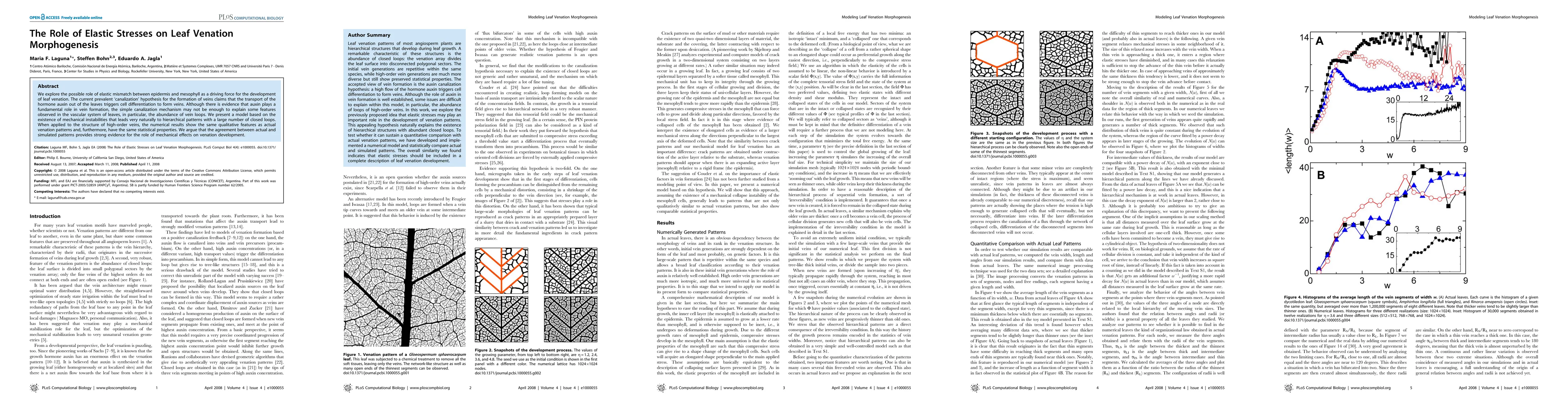 This paper investigates the role of elastic stresses in leaf venation morphogenesis, proposing that mechanical instabilities driven by elastic mismatch between epidermis and mesophyll can better explain the formation of leaf veins, including the prevalence of vein loops, than the traditional auxin-based canalization hypothesis. The model demonstrates that mechanical effects can generate hierarchical patterns consistent with observed venation structures.