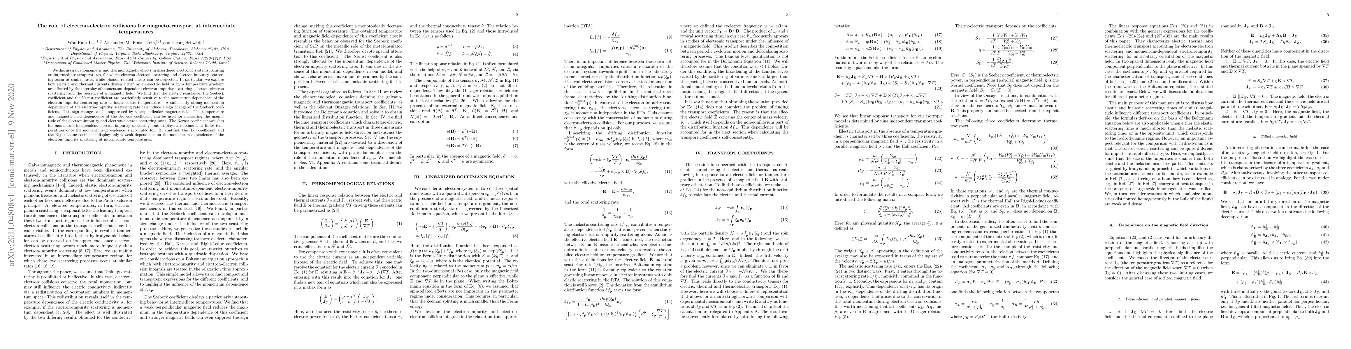This paper investigates magnetotransport in disordered electronic systems at intermediate temperatures, where electron-electron and electron-impurity scattering rates are comparable. It finds that the Seebeck coefficient is sensitive to the momentum dependence of electron-impurity scattering, with a potential sign change that can be suppressed by a magnetic field.
