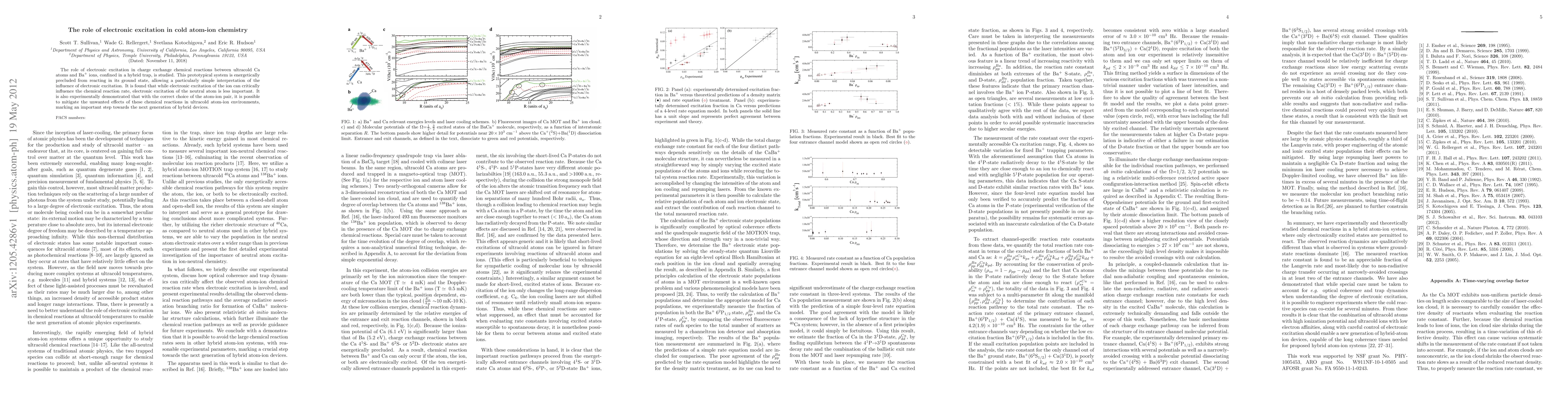 The role of electronic excitation in charge exchange chemical reactions between ultracold Ca atoms and Ba$^+$ ions, confined in a hybrid trap, is studied. This prototypical system is energetically precluded from reacting in its ground state, allowing a particularly simple interpretation of the influence of electronic excitation. It is found that while electronic excitation of the ion can critically influence the chemical reaction rate, electronic excitation of the neutral atom is less important. It is also experimentally demonstrated that with the correct choice of the atom-ion pair, it is possible to mitigate the unwanted effects of these chemical reactions in ultracold atom-ion environments, marking an important step towards the next generation of hybrid devices.