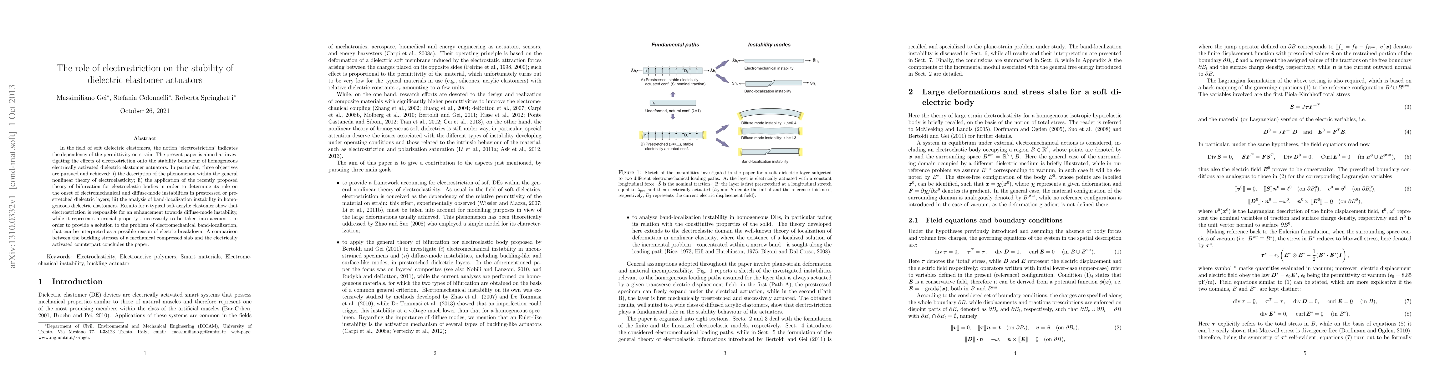 This research investigates electrostriction's impact on the stability of dielectric elastomer actuators within the framework of nonlinear electroelasticity. It reveals that electrostriction enhances diffuse-mode instability and is vital in resolving electromechanical band-localization issues, potentially preventing electric breakdown.
