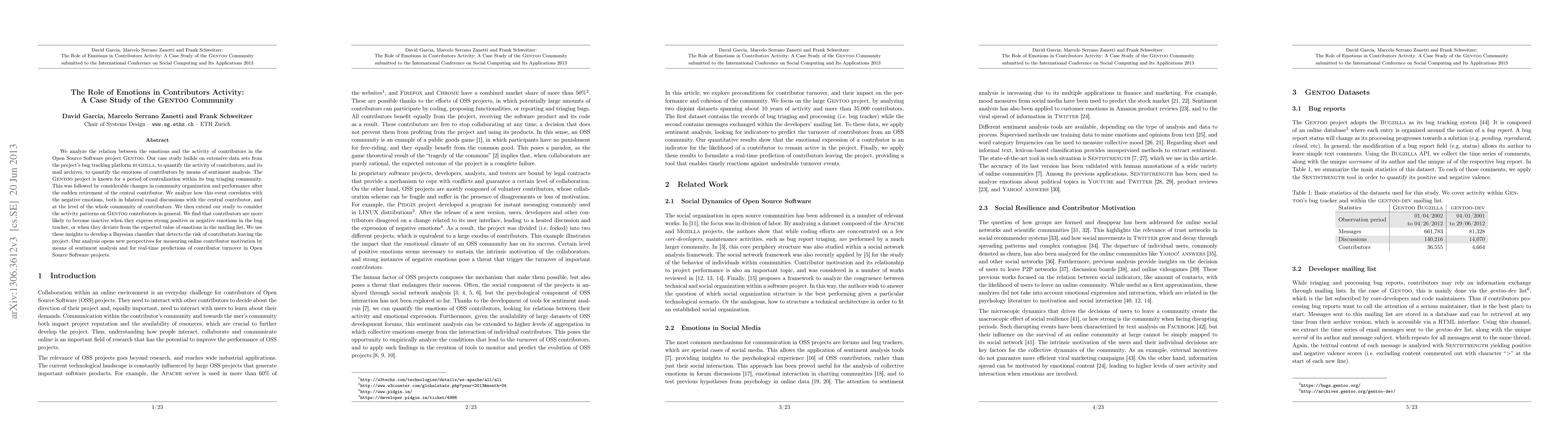 This study explores the correlation between emotions and contributor activity in the Gentoo Open Source Software project, using sentiment analysis on Bugzilla data and email archives. It finds that strong emotions, both positive and negative, correlate with contributor inactivity, leading to the development of a Bayesian classifier for predicting contributor turnover.