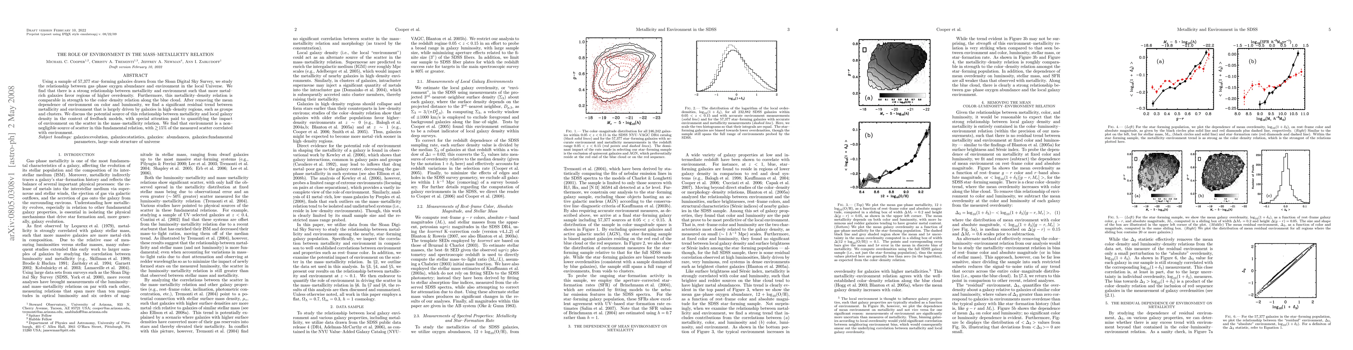 This study investigates the relationship between gas-phase oxygen abundance (metallicity) and galaxy environment using a large sample of star-forming galaxies from the Sloan Digital Sky Survey. It finds a significant correlation between metallicity and local galaxy density, suggesting that metal-rich galaxies predominantly reside in high-density regions, contributing to the scatter in the mass-metallicity relation.