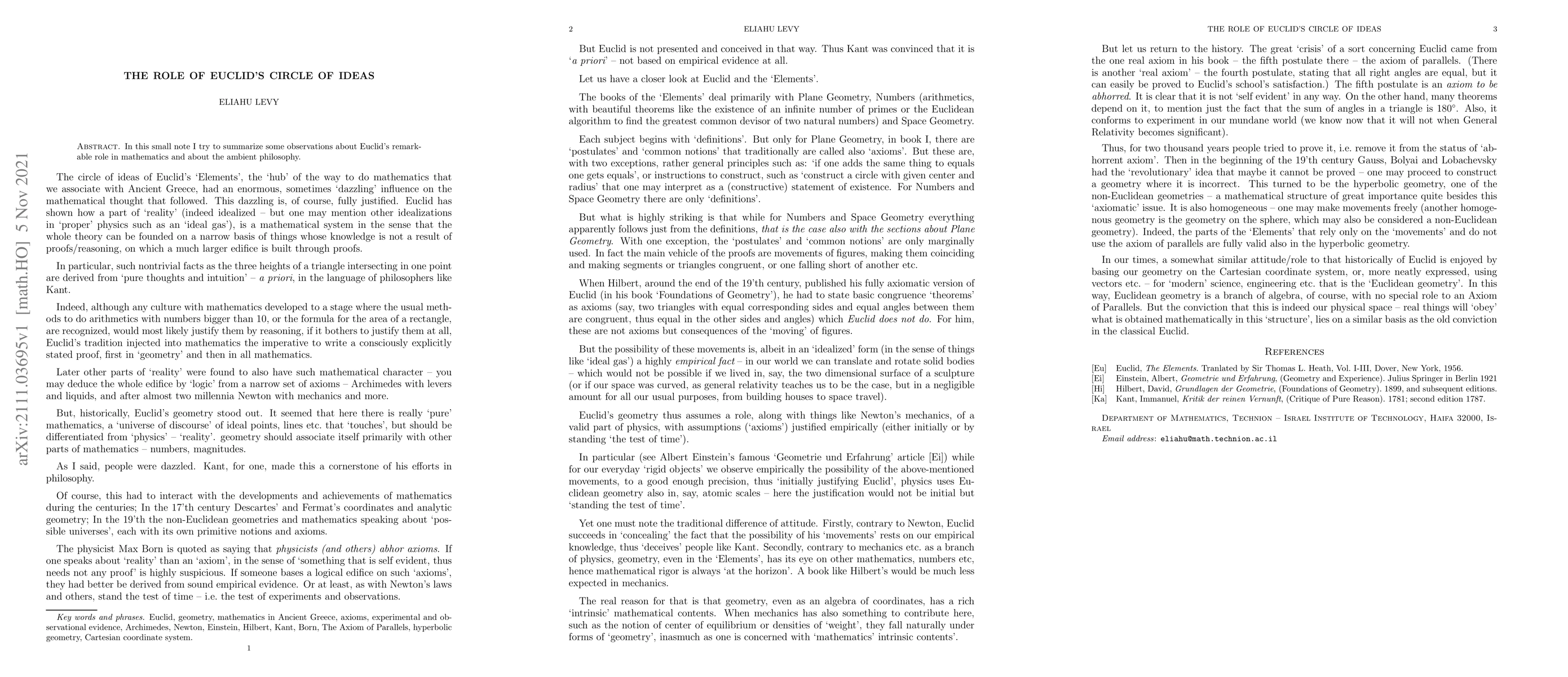 Summary: This paper highlights Euclid's significant contributions to mathematics, emphasizing his foundational role in shaping mathematical thought and the philosophical context surrounding his work. It underscores the enduring influence of his ideas on subsequent mathematical developments.