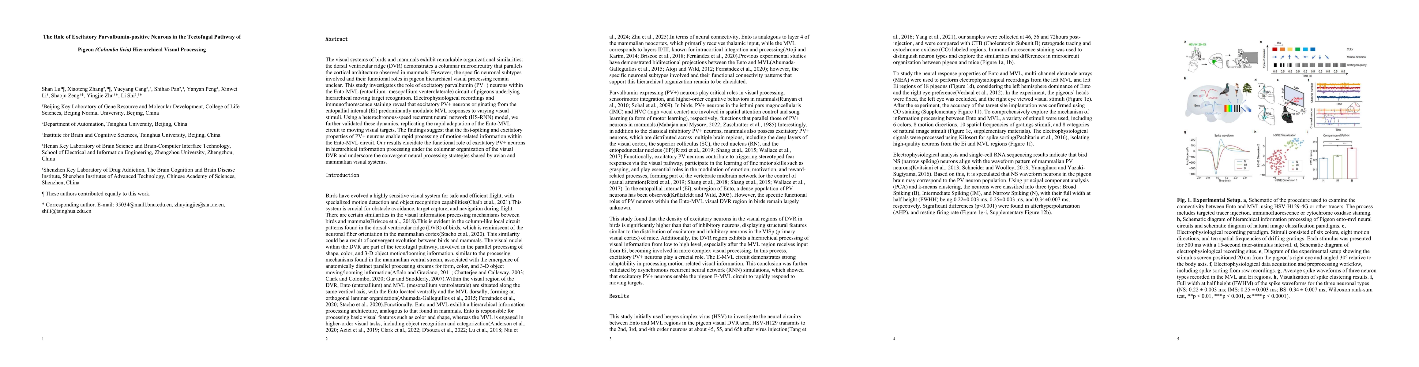 This study investigated the role of excitatory parvalbumin (PV+) neurons in the Ento-MVL circuit of pigeons using electrophysiological recordings, immunofluorescence staining, and a heterochronous-speed recurrent neural network (HS-RNN) model.