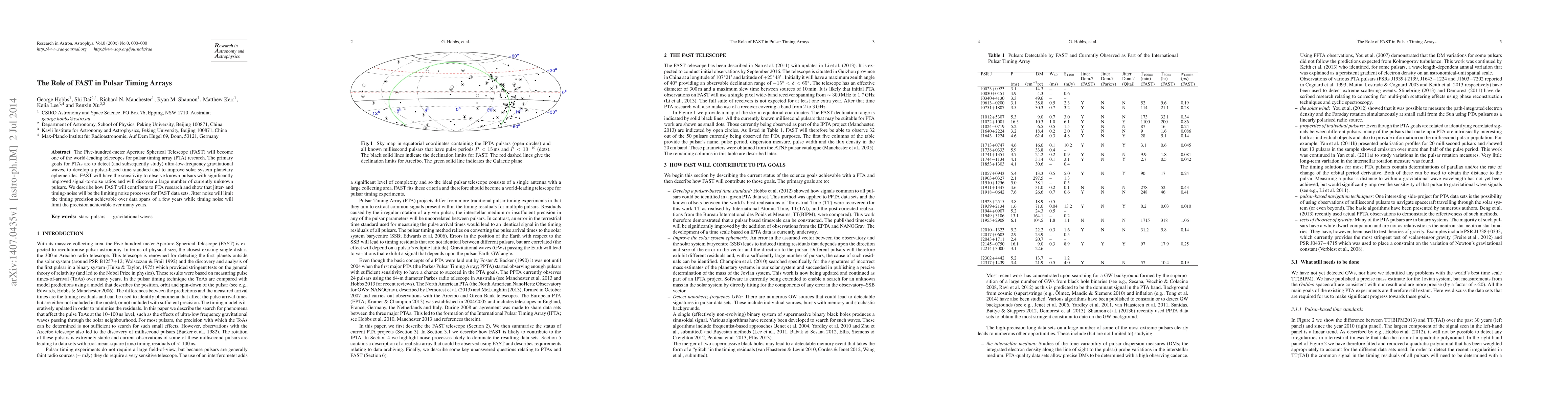 The Five-hundred-meter Aperture Spherical Telescope (FAST) will become one of the world-leading telescopes for pulsar timing array (PTA) research. The primary goals for PTAs are to detect (and subsequently study) ultra-low-frequency gravitational waves, to develop a pulsar-based time standard and to improve solar system planetary ephemerides. FAST will have the sensitivity to observe known pulsars with significantly improved signal-to-noise ratios and will discover a large number of currently unknown pulsars. We describe how FAST will contribute to PTA research and show that jitter- and timing-noise will be the limiting noise processes for FAST data sets. Jitter noise will limit the timing precision achievable over data spans of a few years while timing noise will limit the precision achievable over many years.