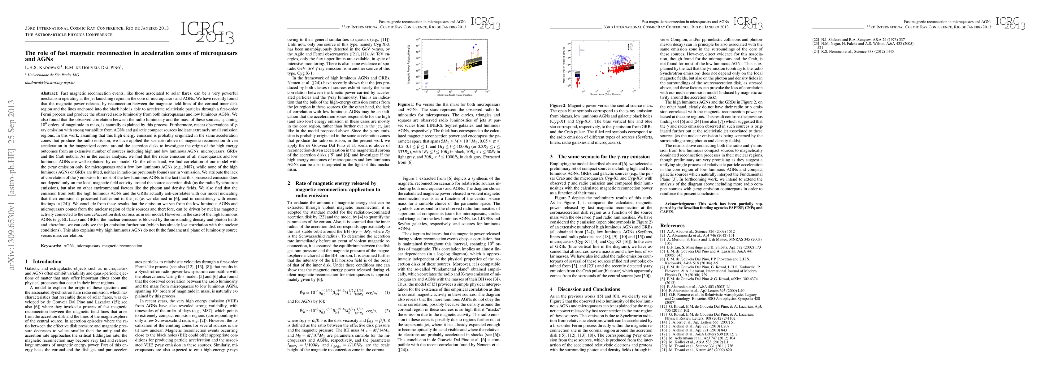 The paper presents a model of magnetic reconnection-driven acceleration in the magnetized corona of accretion disks, providing a physical interpretation for empirical correlations in radio and X-ray emissions of microquasars and AGNs.