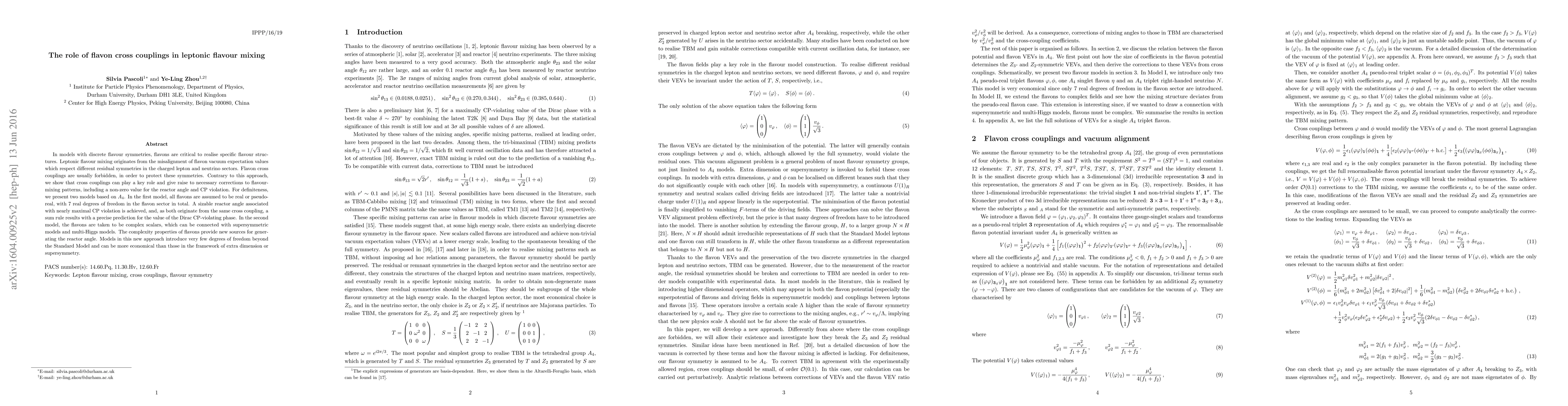 This paper explores the role of flavon cross couplings in leptonic flavour mixing, demonstrating that these couplings can lead to corrections in flavour-mixing patterns, including a non-zero reactor angle and CP violation. It presents two $A_4$ based models, one with real flavons predicting a sizable reactor angle and maximal CP violation, and another with complex flavons offering new sources for generating the reactor angle.