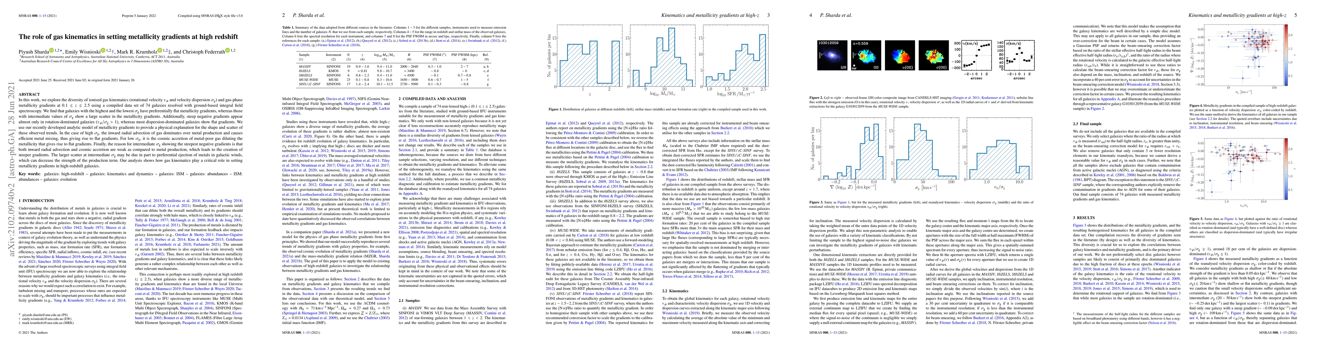 In this work, we explore the diversity of ionised gas kinematics (rotational velocity $v_{\phi}$ and velocity dispersion $\sigma_{\mathrm{g}}$) and gas-phase metallicity gradients at $0.1 \leq z \leq 2.5$ using a compiled data set of 74 galaxies resolved with ground-based integral field spectroscopy. We find that galaxies with the highest and the lowest $\sigma_{\mathrm{g}}$ have preferentially flat metallicity gradients, whereas those with intermediate values of $\sigma_{\mathrm{g}}$ show a large scatter in the metallicity gradients. Additionally, steep negative gradients appear almost only in rotation-dominated galaxies ($v_{\phi}/\sigma_{\mathrm{g}} > 1$), whereas most dispersion-dominated galaxies show flat gradients. We use our recently developed analytic model of metallicity gradients to provide a physical explanation for the shape and scatter of these observed trends. In the case of high $\sigma_{\mathrm{g}}$, the inward radial advection of gas dominates over metal production and causes efficient metal mixing, thus giving rise to flat gradients. For low $\sigma_{\mathrm{g}}$, it is the cosmic accretion of metal-poor gas diluting the metallicity that gives rise to flat gradients. Finally, the reason for intermediate $\sigma_{\mathrm{g}}$ showing the steepest negative gradients is that both inward radial advection and cosmic accretion are weak as compared to metal production, which leads to the creation of steeper gradients. The larger scatter at intermediate $\sigma_{\mathrm{g}}$ may be due in part to preferential ejection of metals in galactic winds, which can decrease the strength of the production term. Our analysis shows how gas kinematics play a critical role in setting metallicity gradients in high-redshift galaxies.